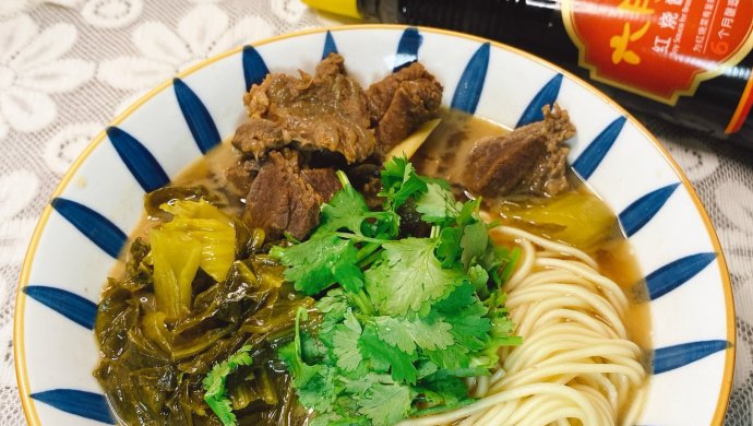 材料准备:主料:牛肉汤头牛肉做法在昨天的菜谱里、面条一斤辅料:葱、蒜香菜盐少许制作步骤:步骤1、面条煮熟加一勺煮面的汤,加香菜和葱沫步骤2、牛肉汤半勺加蒜炒香步骤3、加牛肉...