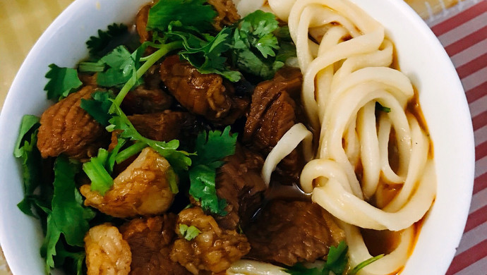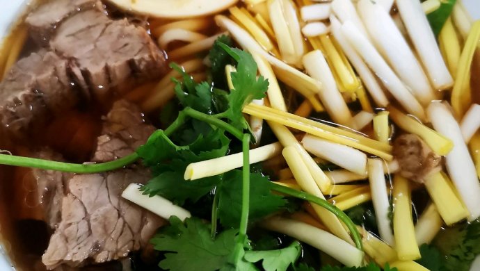 女儿最爱的美食之一一、材料准备主料:面条按照食量准备、卤牛肉50辅料:香菜少许根、蒜黄几根二、制作步骤步骤1、制作卤牛肉,牛肉面灵魂就在这一口牛肉汤我是简单版的(900克牛腱...