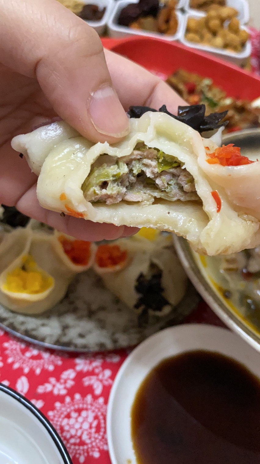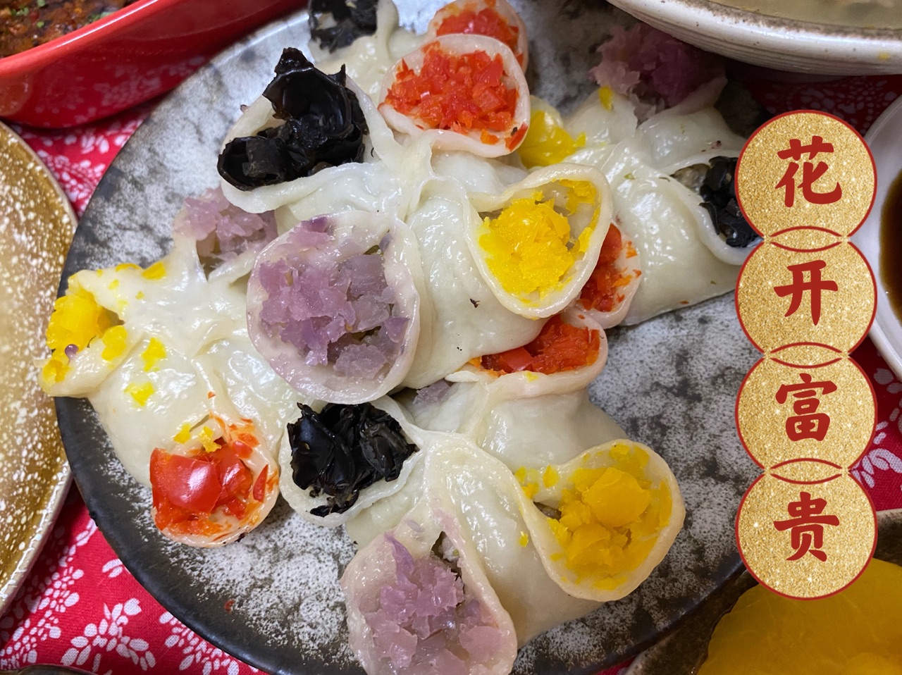 步骤10、花开富贵是芹菜肉馅的花饺子,皮有点厚,蒸出来蘸陈醋可成神仙。