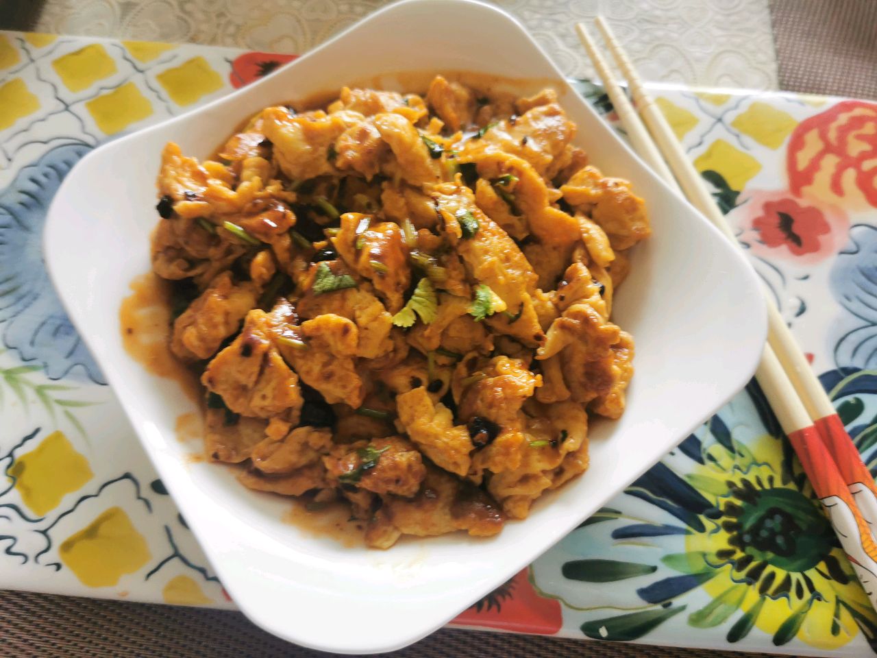 步骤5、加入灵魂汤汁翻炒起粘稠状,撒上葱花或香菜末即可出锅