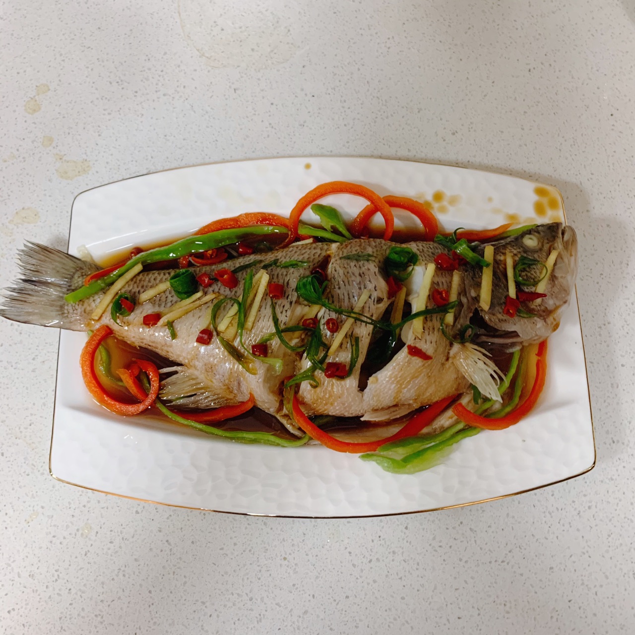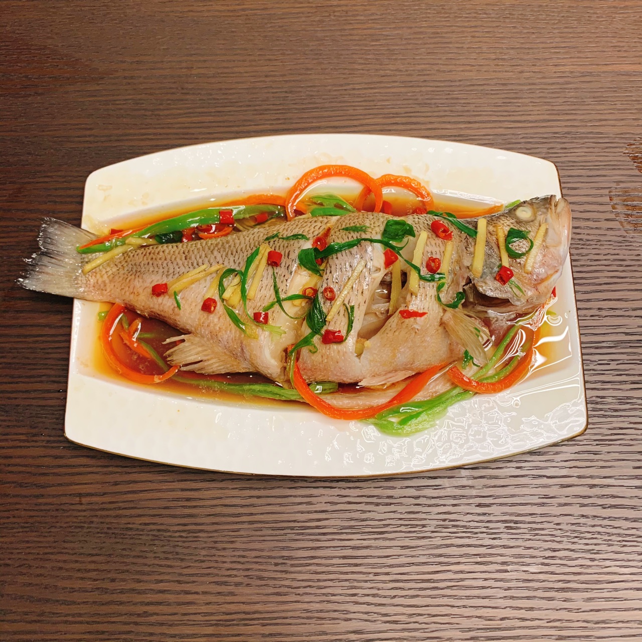 辅料:青椒半个、小葱5根、辣椒3个、生姜半块、花生油适量、料酒适量、美极鲜酱油3~5滴、生抽1勺、蒸鱼豉油3勺、鸡精适量