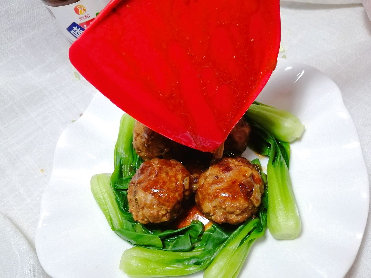 辅料:味达美红烧酱油20g、味达美臻品料酒15g、盐3g、油菜8颗、葱花20g、姜末20g、鸡蛋1个、淀粉20g、食用油适量