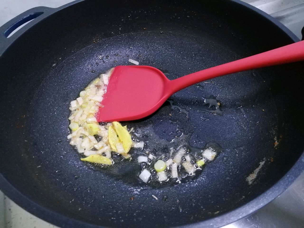步骤8、另起锅,炒锅放油加入葱花、姜丝炒香