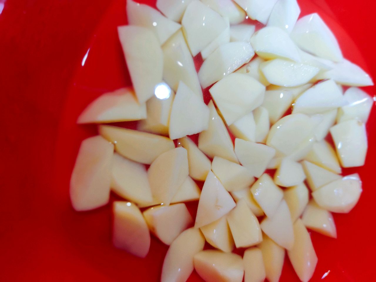 步骤8、土豆切块,泡出淀粉后洗净沥水