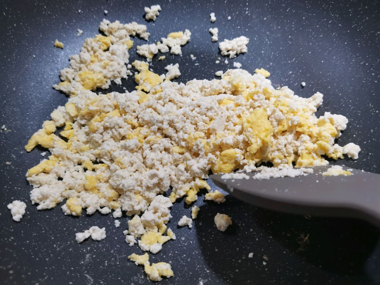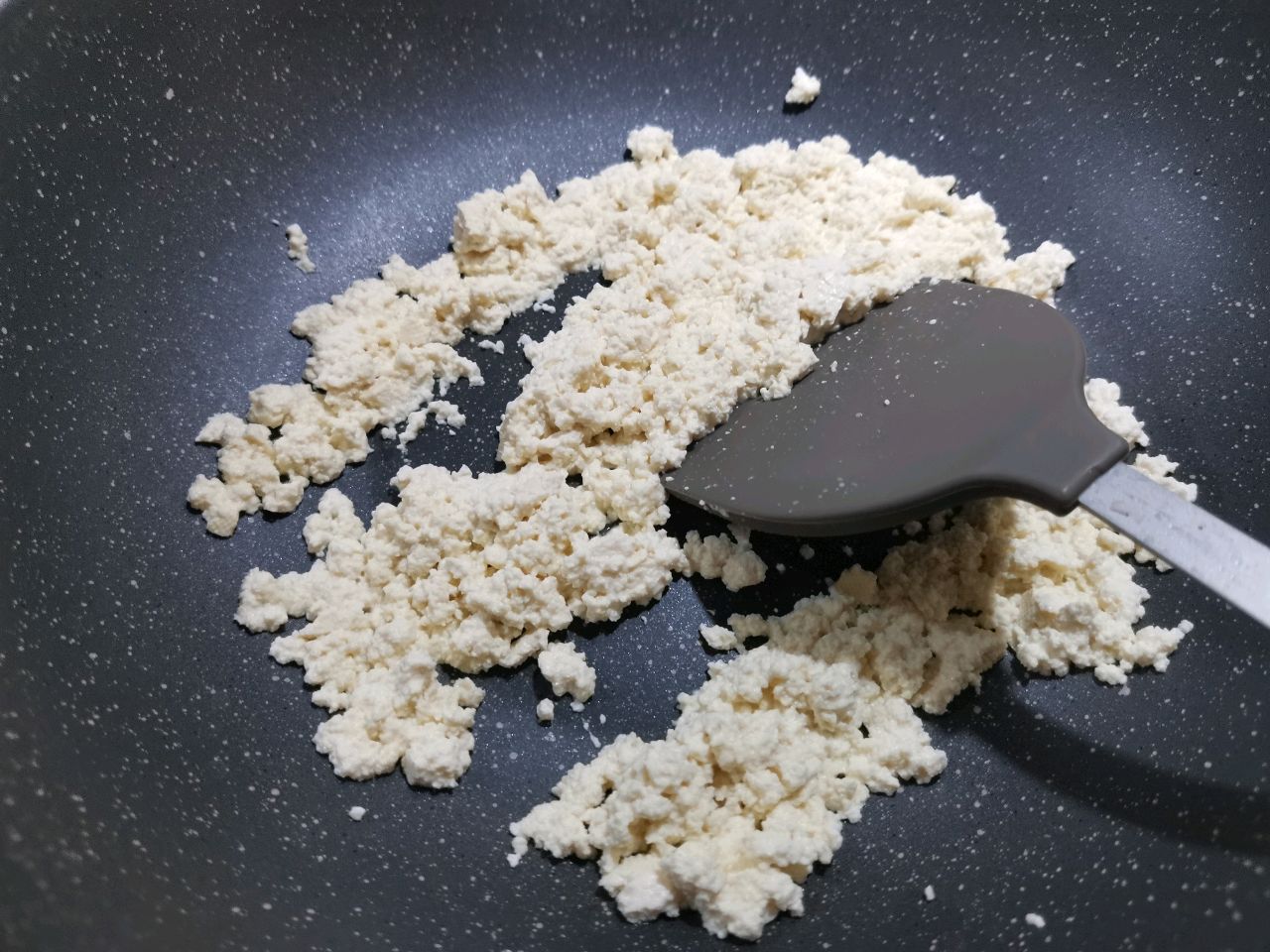 步骤1、把豆腐用手抓碎,鸡蛋搅拌好