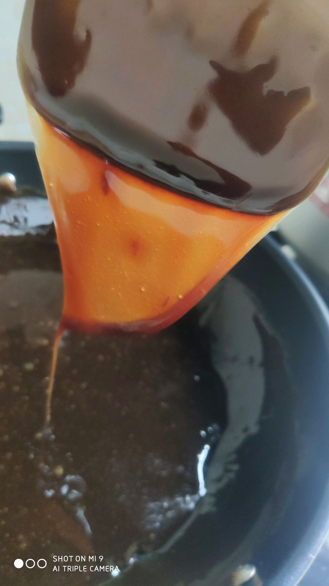 步骤2、小火熬制,一直打圈防止烧糊,直到挂旗。