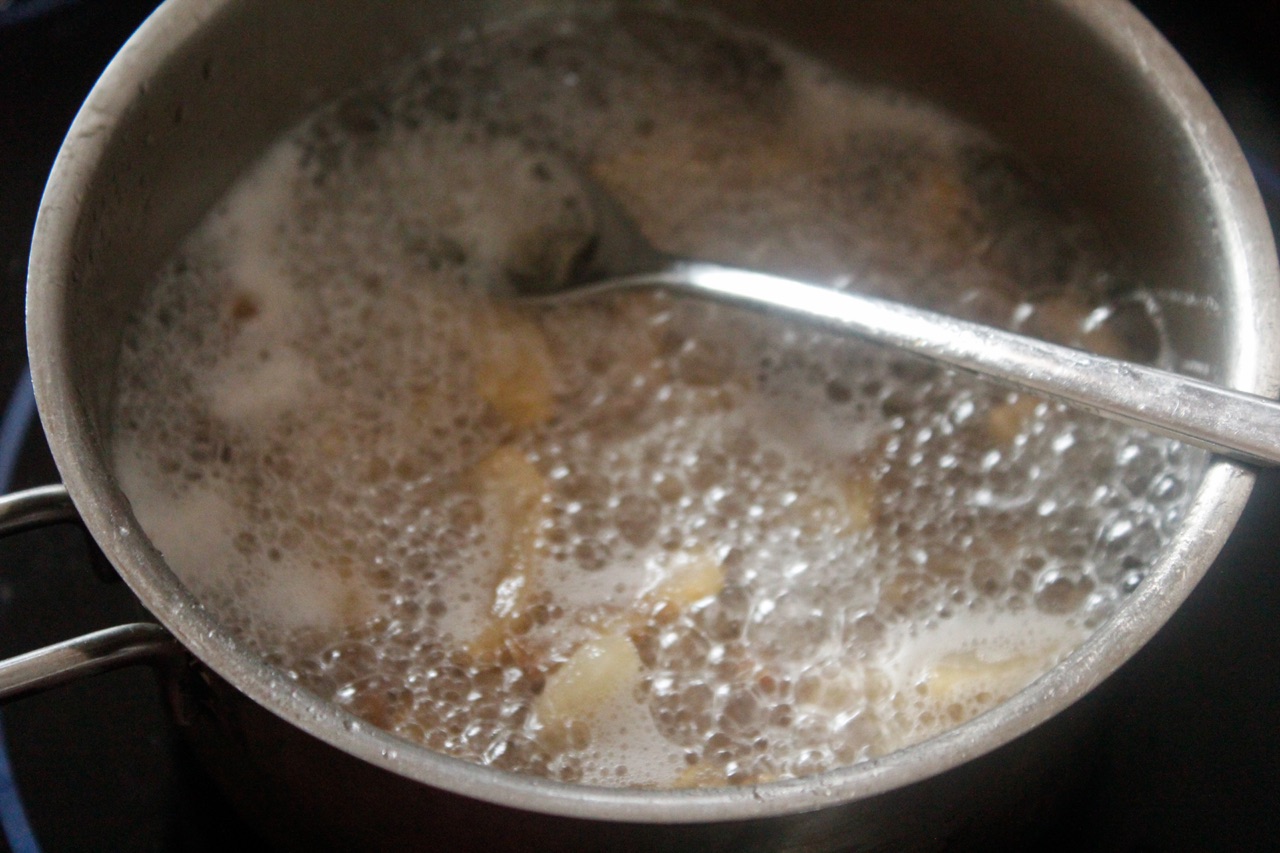 步骤2、切好放小锅里,倒一小碗清水(80-100ml);