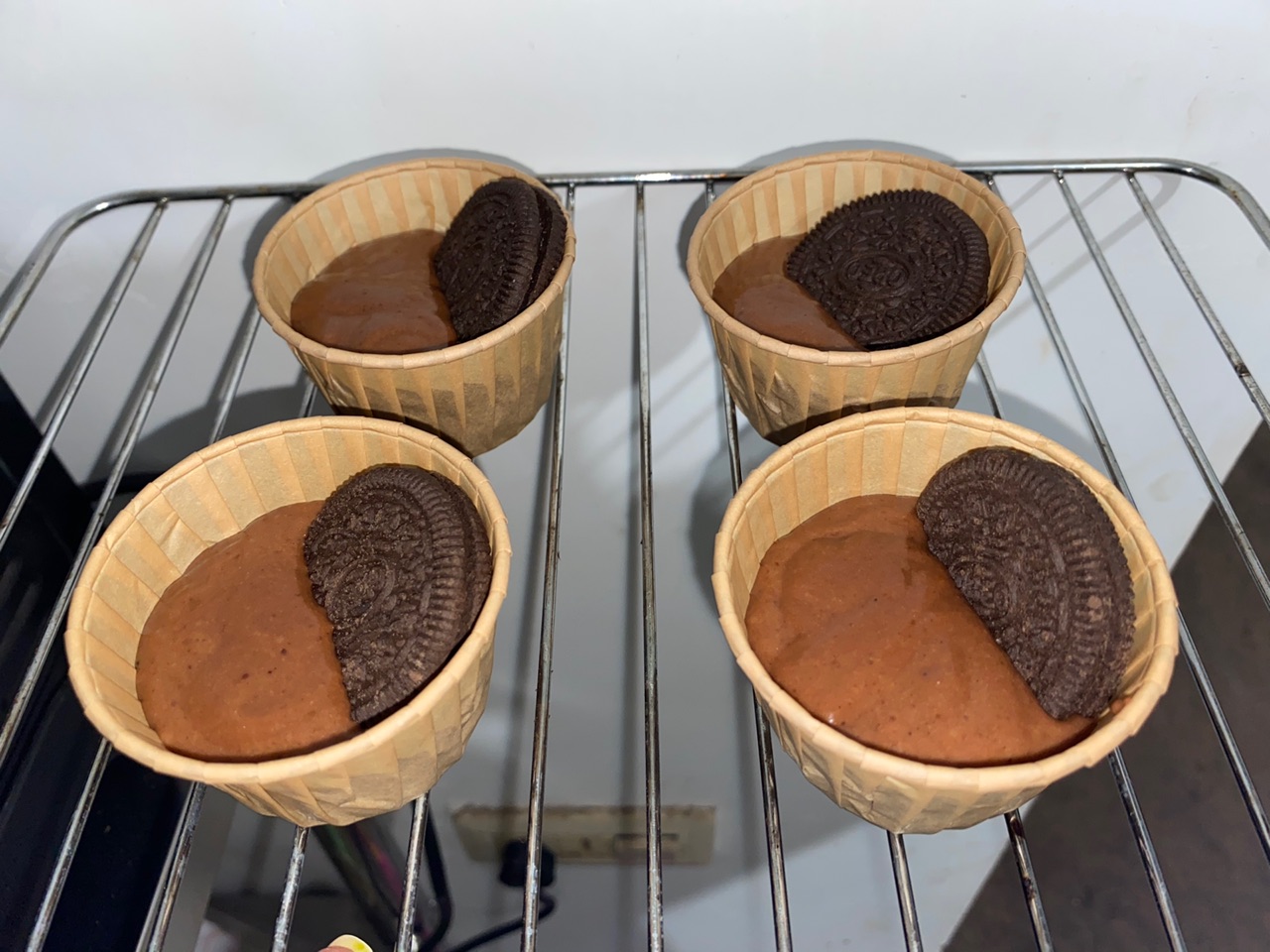 步骤7、超级浓郁好吃的可可奥利奥纸杯蛋糕就好啦