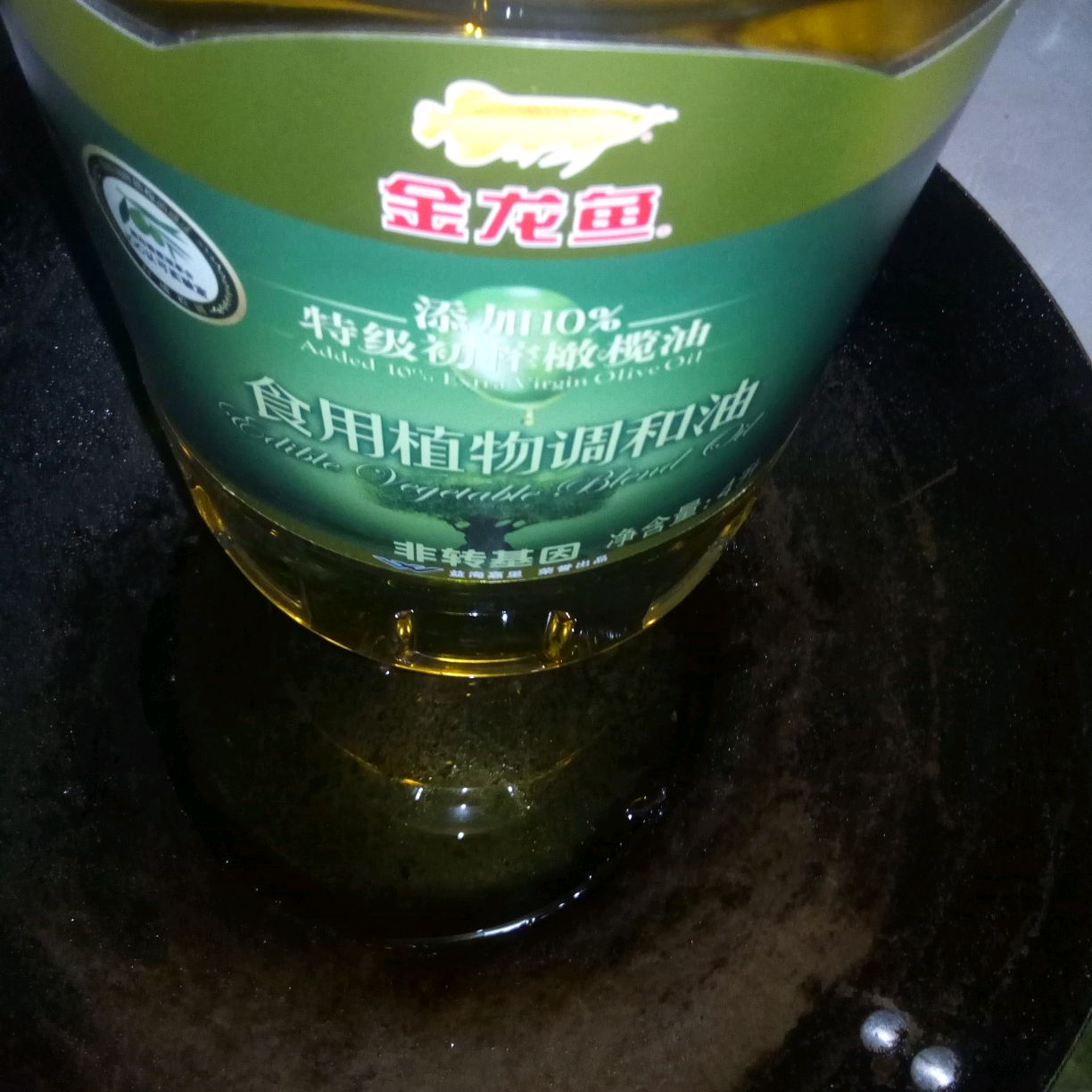 步骤2、炒锅中倒入金龙鱼特级初榨橄榄调和油。