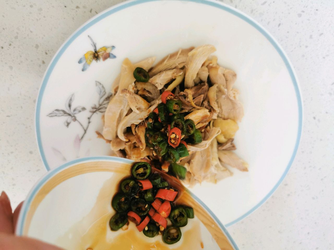 辅料:葱段3-5段、料酒2瓶盖、大蒜2瓣、姜2片、生抽,醋各15g、藤椒油(花椒油)15g、辣椒2根