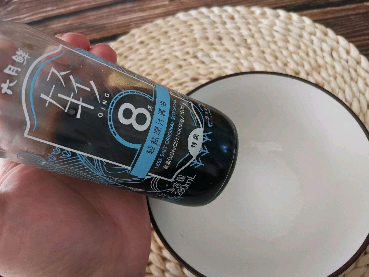 步骤5、倒入六月鲜8克轻盐原汁酱油(尝尝口感,酌情增减)