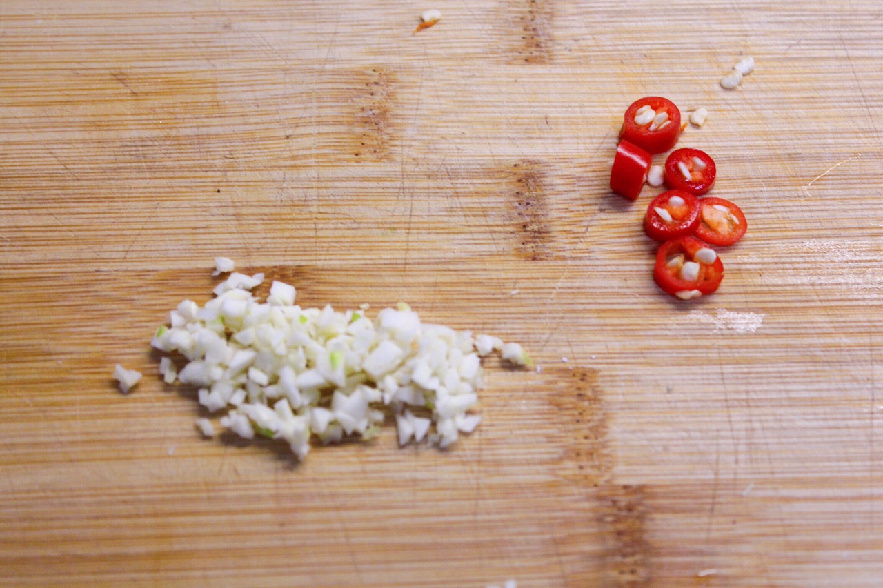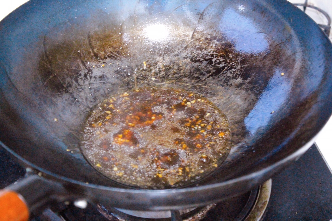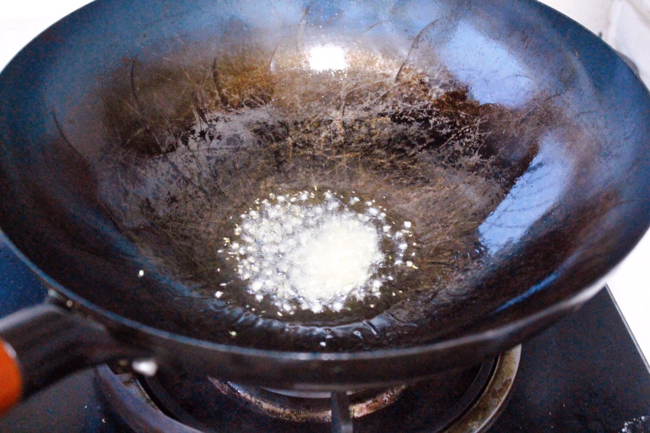 步骤10、再倒入切好的蒜碎,一定要小火不然会糊,煸出蒜香;