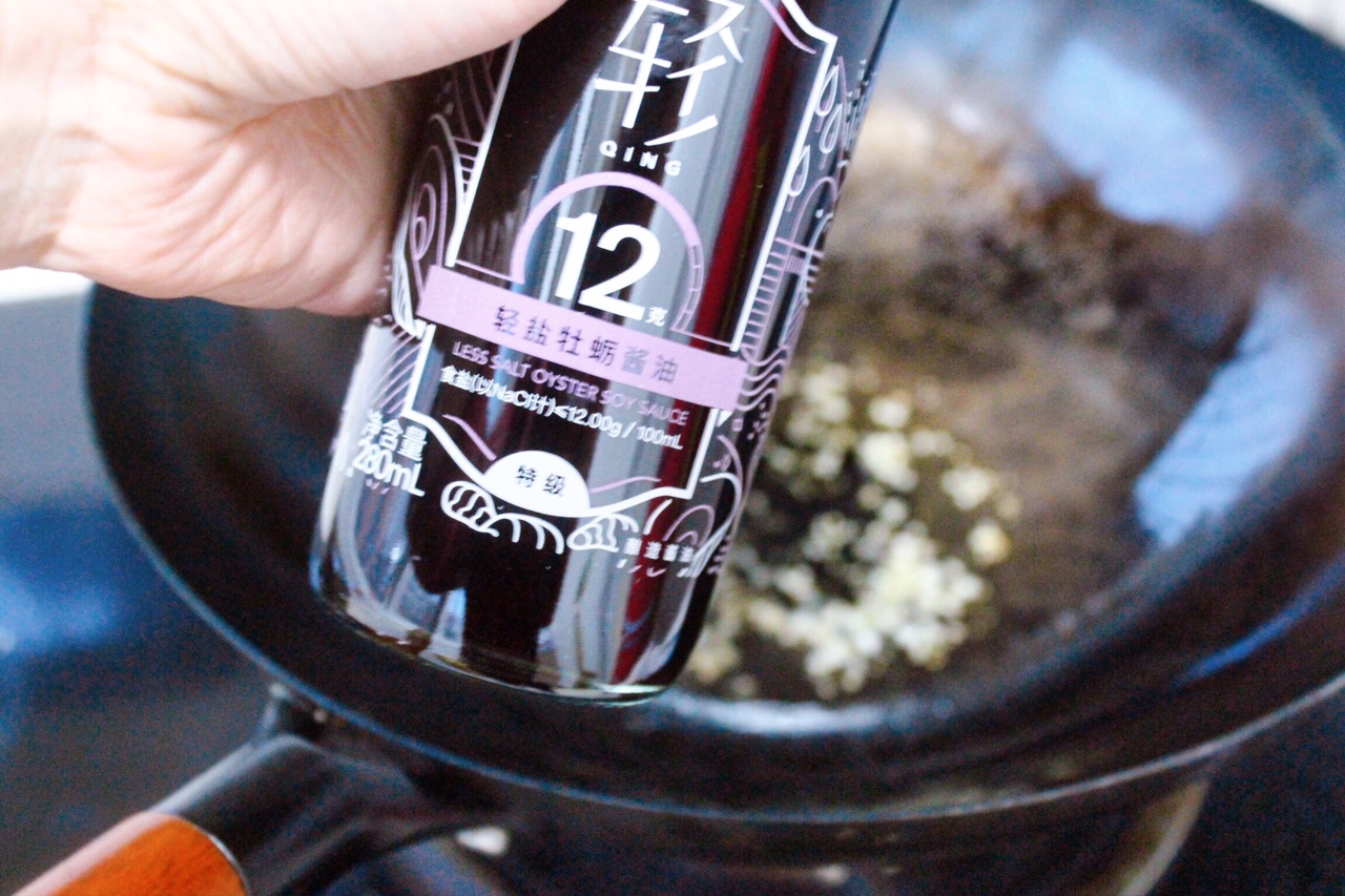 步骤11、倒入六月鲜12克轻盐特级牡蛎酱油1勺;