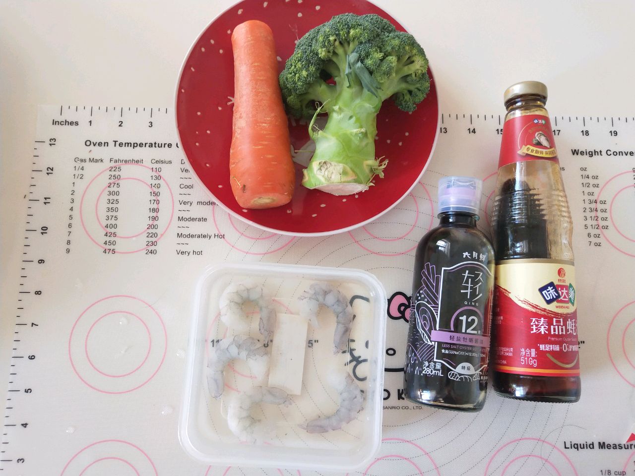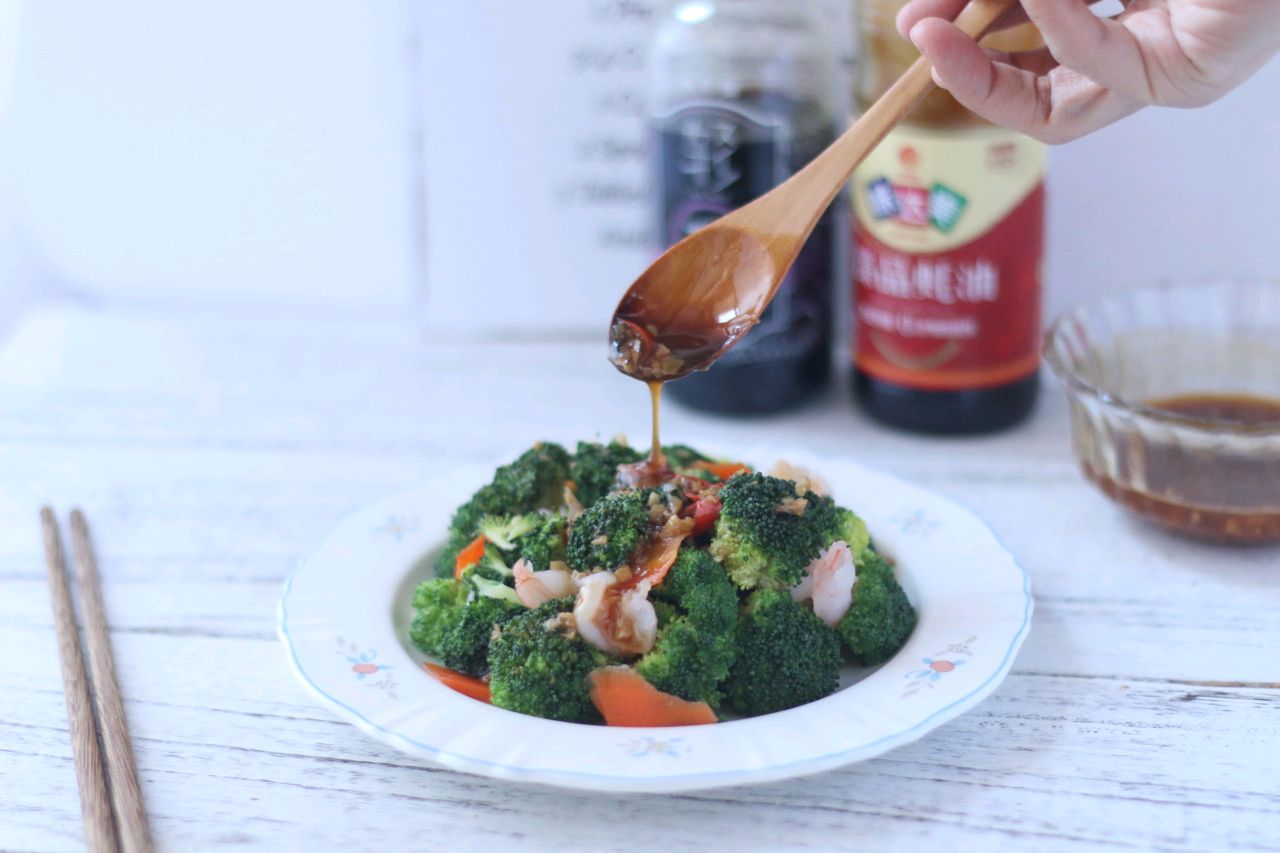 辅料:虾仁4–5个、蒜3瓣、小米椒1个、酱油1勺、蚝油1勺、水淀粉适量、盐适量