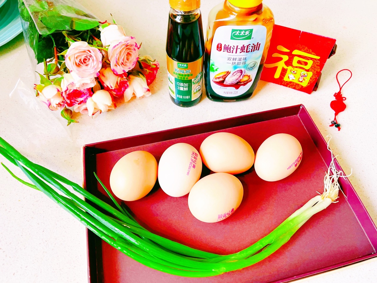 步骤2、食材:德青源鸡蛋,葱,太太乐调味料