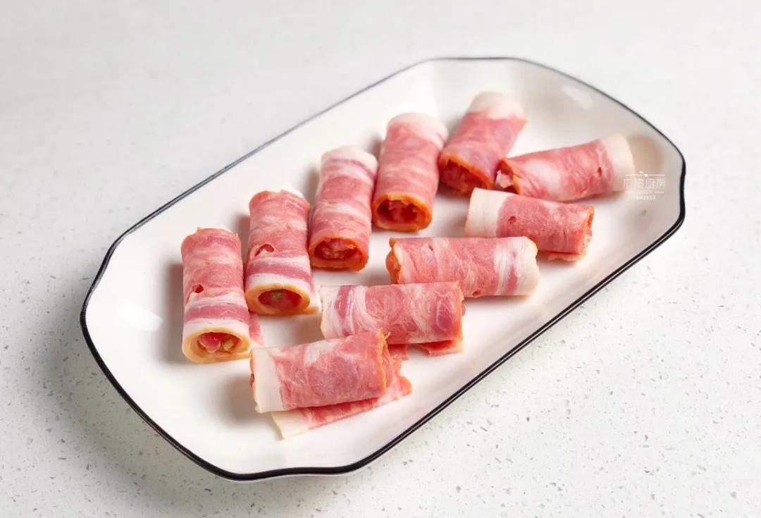 步骤16、浓香的芡汁包裹着培根卷,带着肉末的鲜香,咬一口还能爆汁,味道超赞,做法简单零失败;