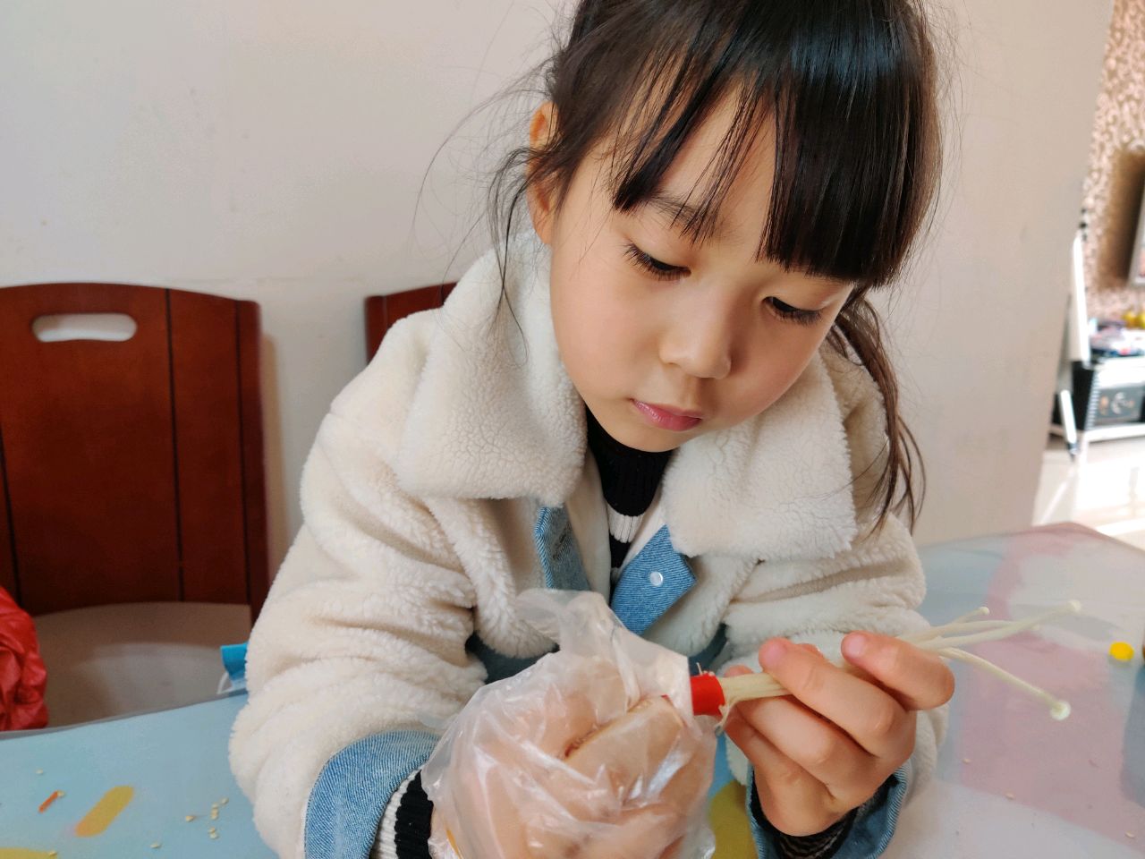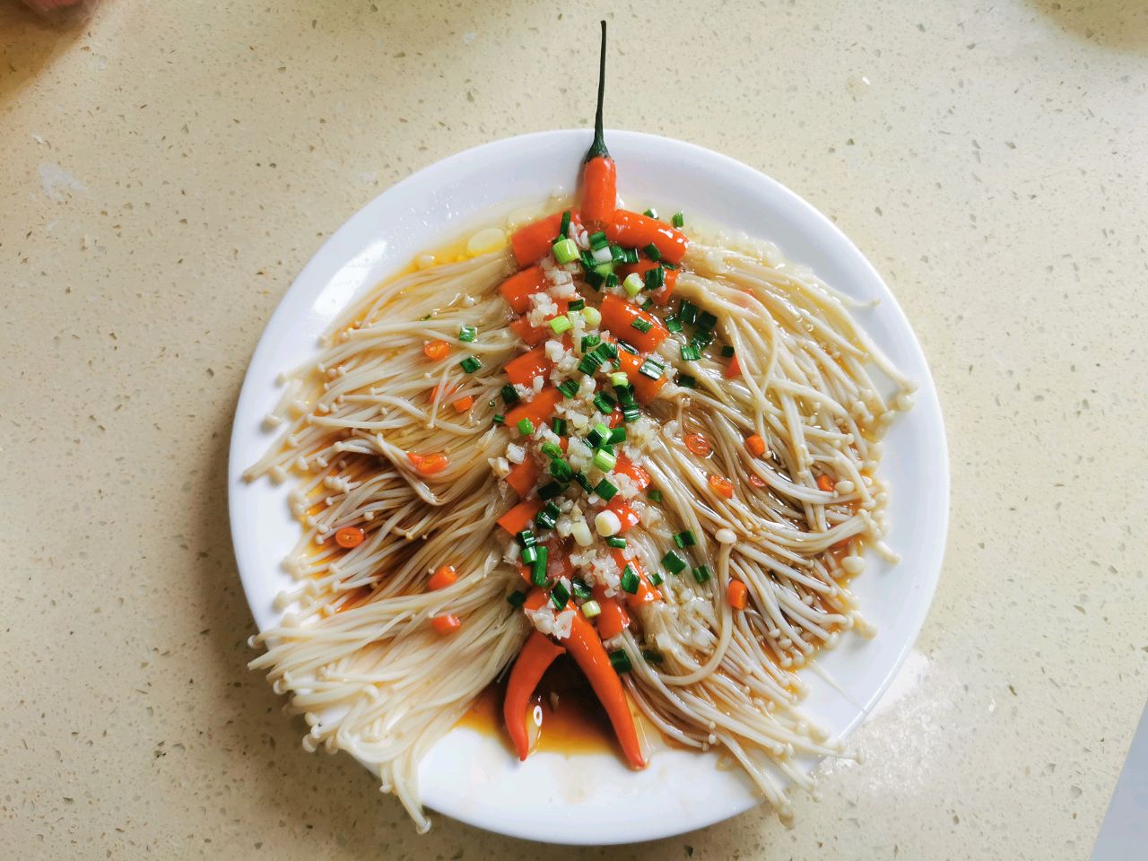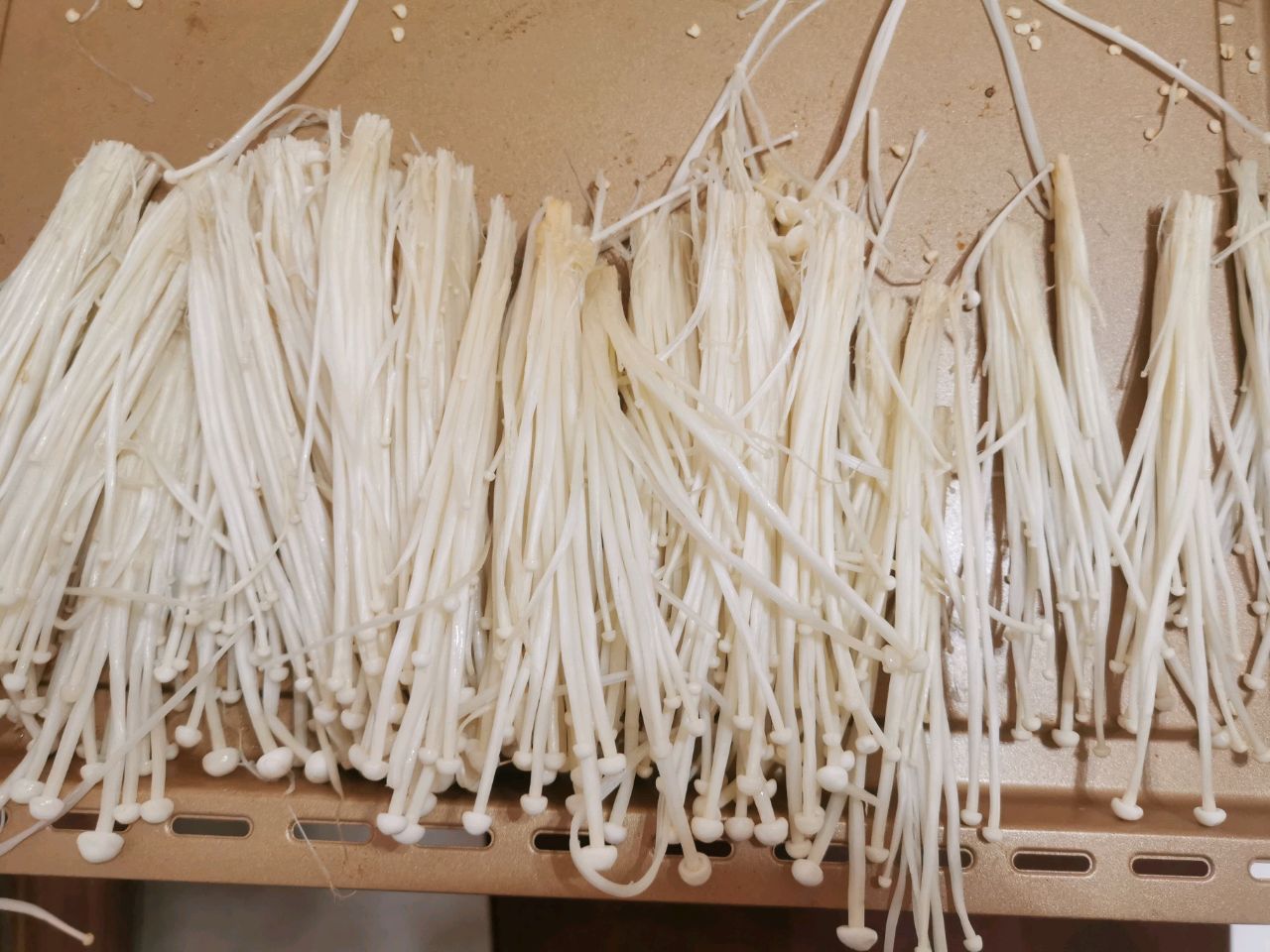 步骤2、金针菇撕成一小簇一小簇,大小就根据辣椒洞来。