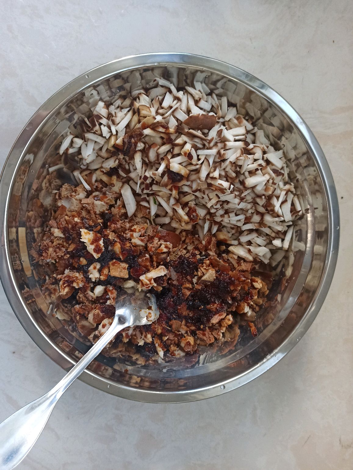 步骤4、香菇,炖肉,切碎,不用调味,不用放盐