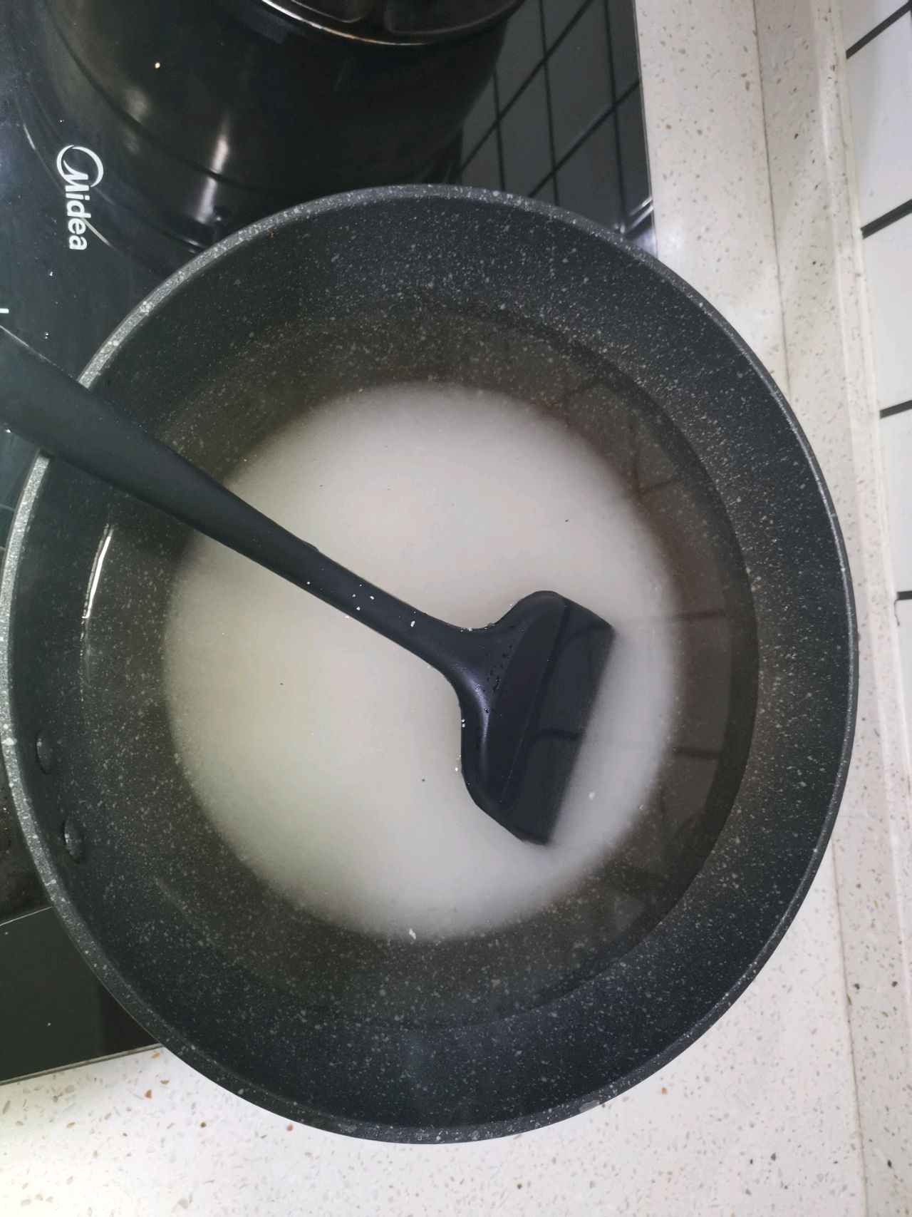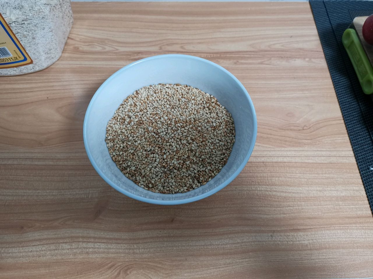 辅料:清水彻底融化白砂糖即可、芝麻50g