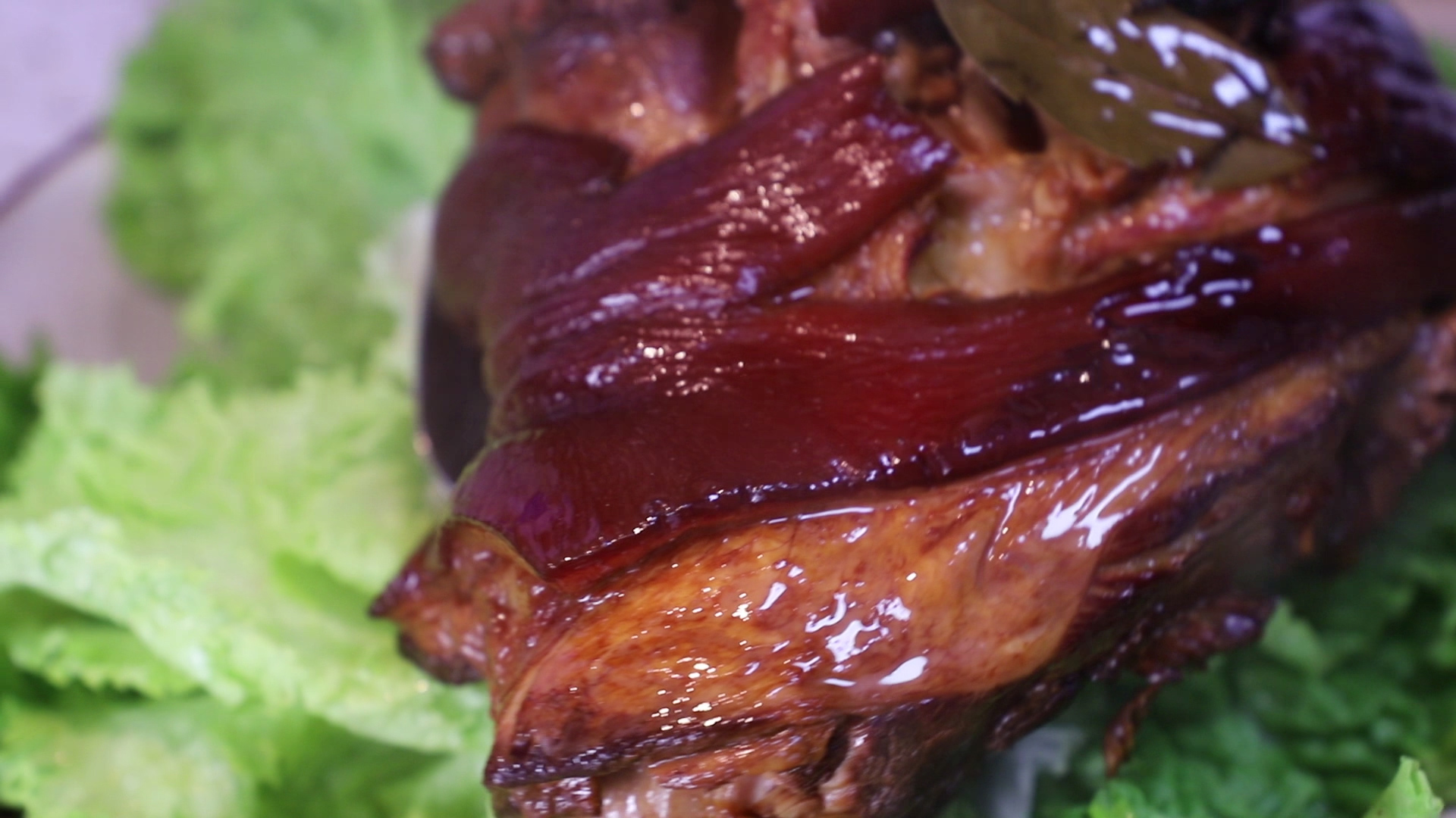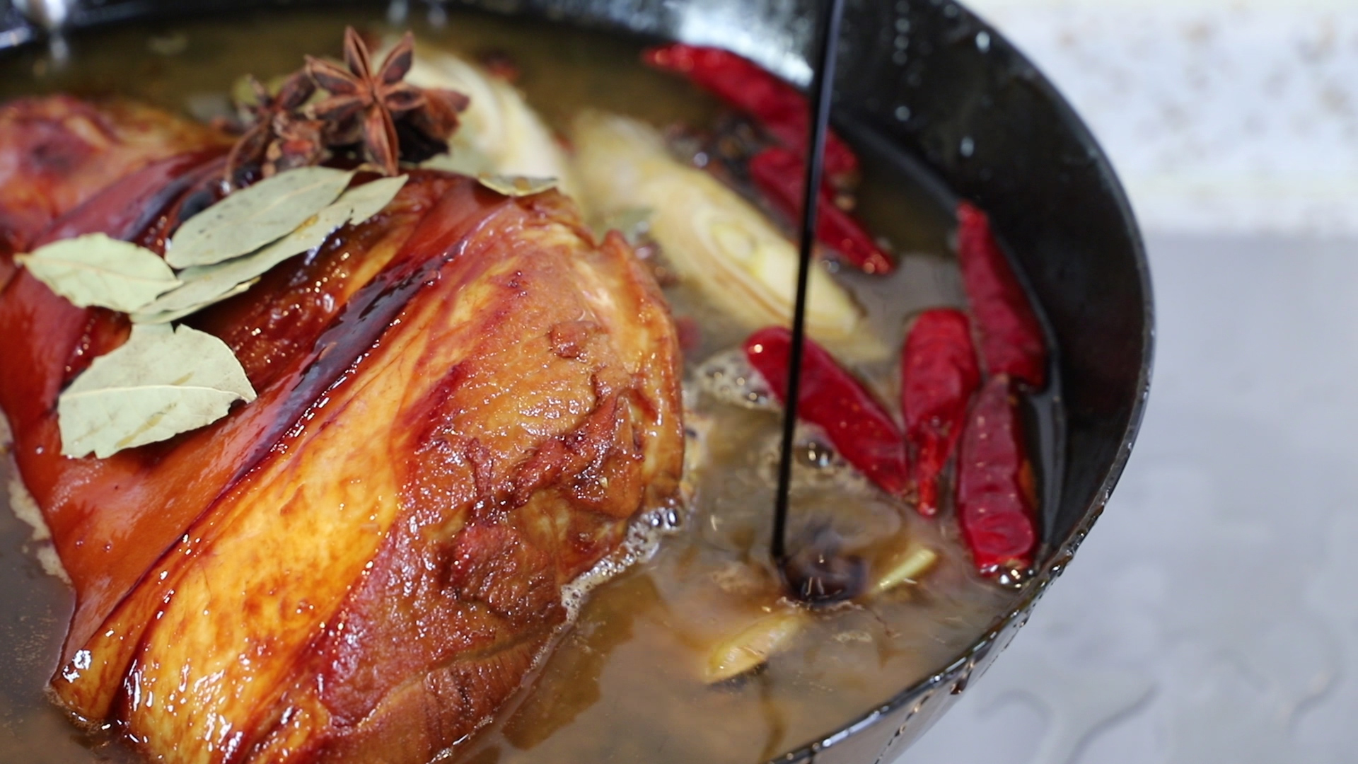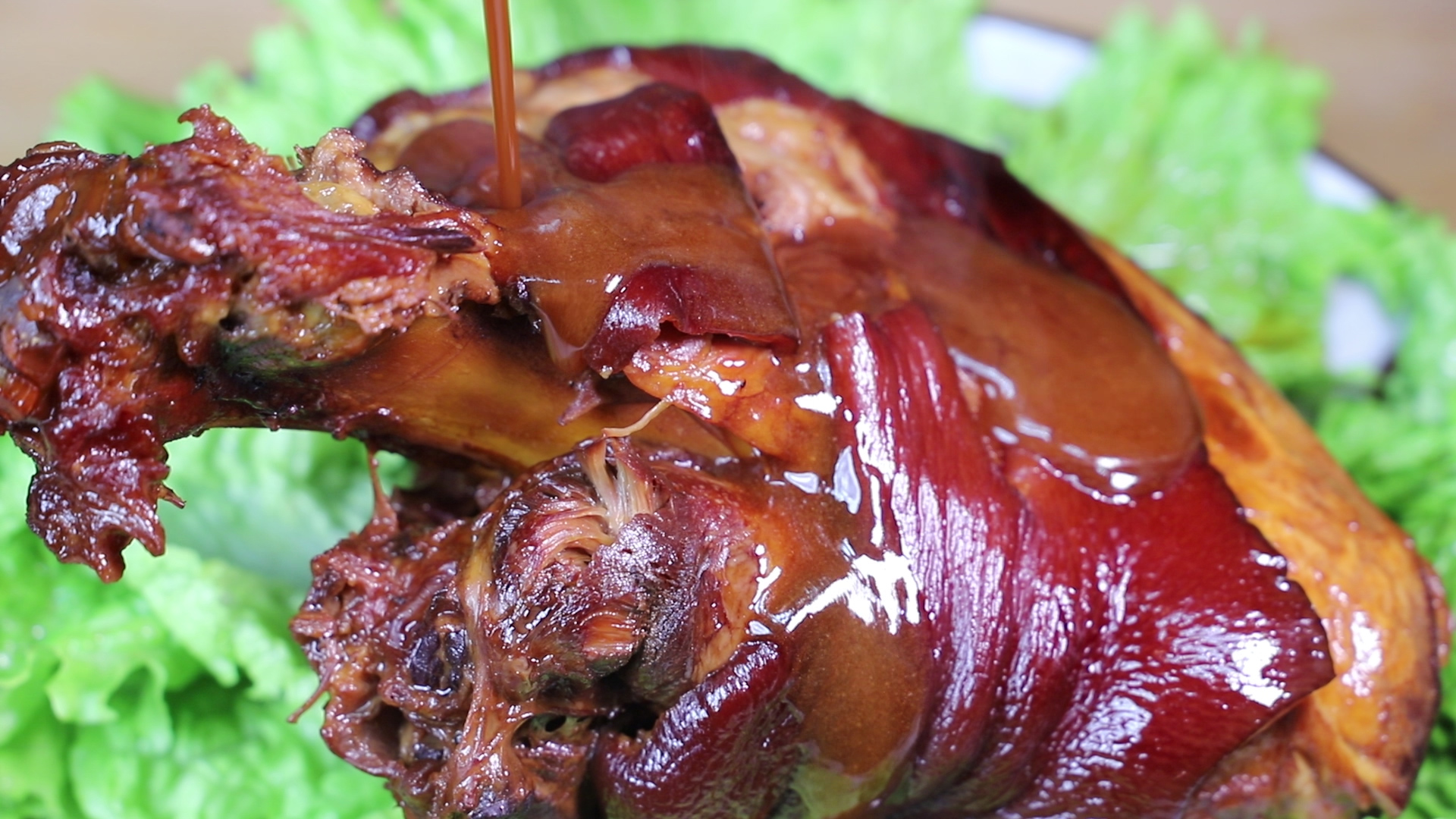 步骤9、取适量肉汤,在锅中用淀粉水勾个芡,淋在肘子上就可以上桌了!