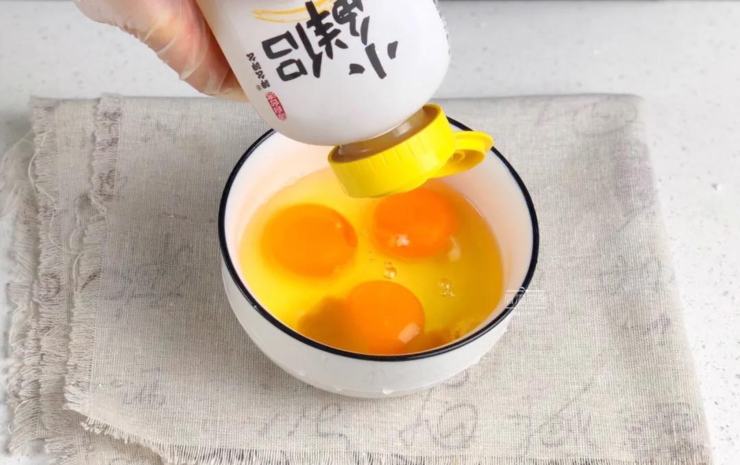 步骤17、碗中打入3个鸡蛋,挤入小鲜侣调味汁搅打均匀;