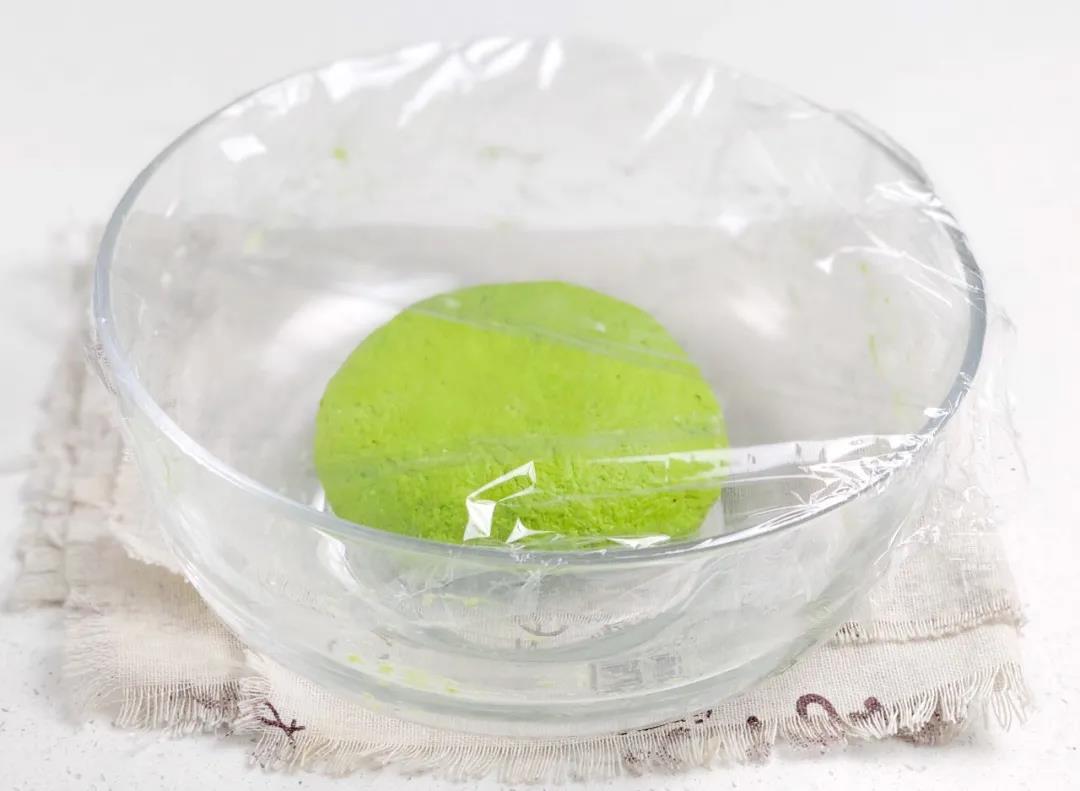 步骤4、揉成光滑的面团,盖上保鲜膜醒30分钟;