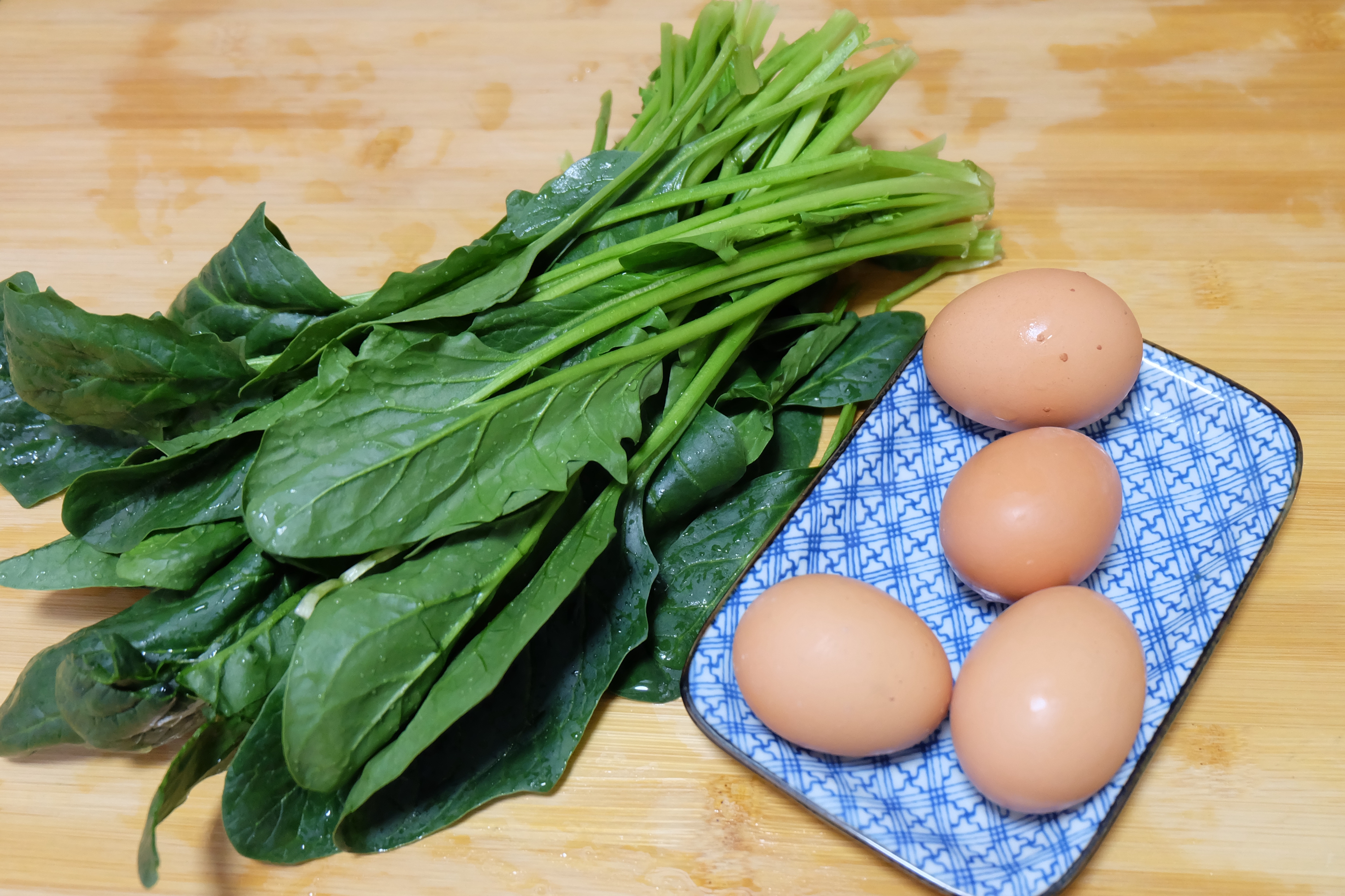 主料:菠菜1把、鸡蛋4个