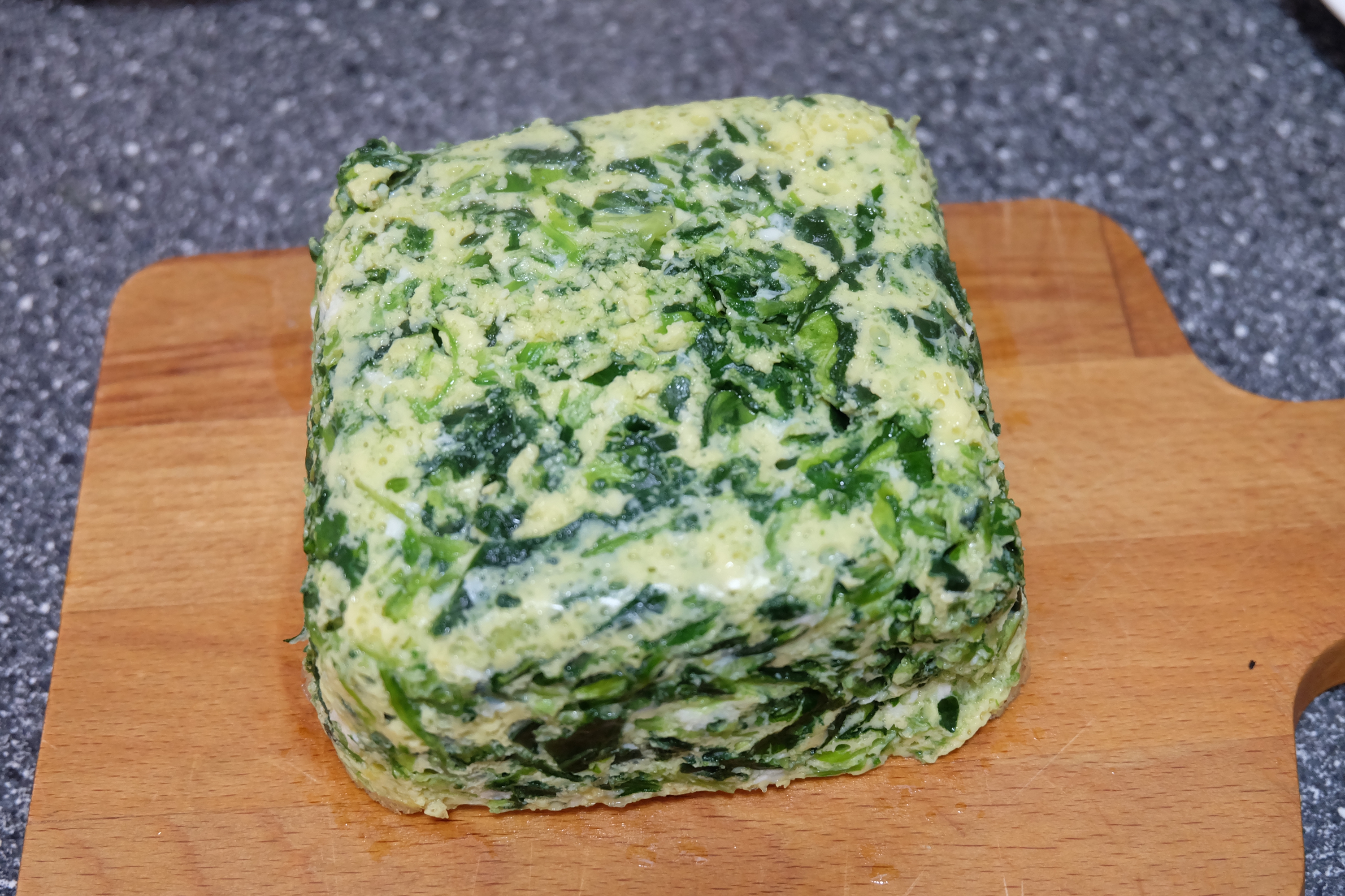 步骤10、因为容器里抹了油,蒸好的菠菜蛋糕很轻松就取出来了