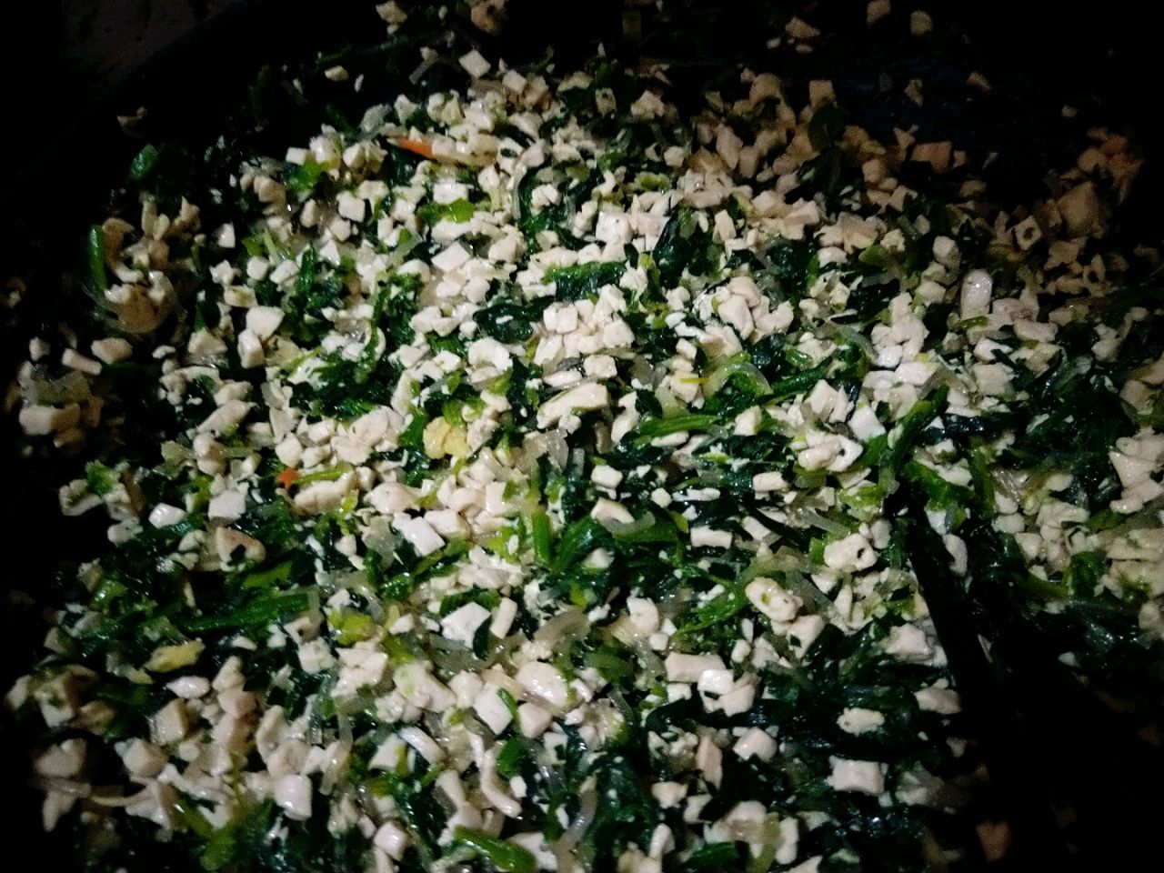 步骤3、菠菜洗净焯水,过凉水,剁碎