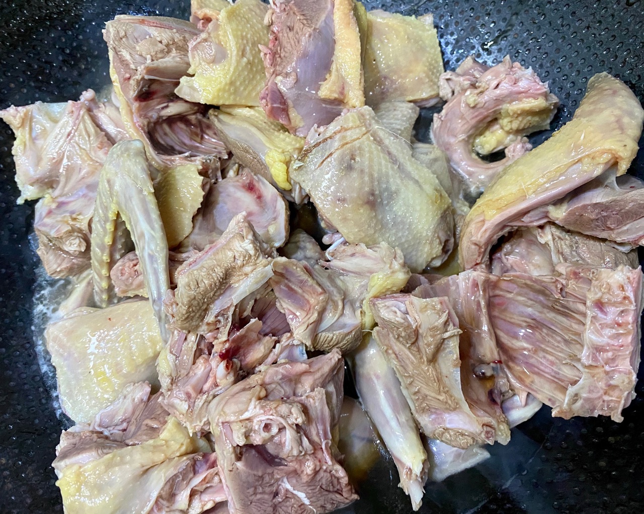 步骤2、切块后放在清水盆浸泡出血水。中途替换几次水清了即可