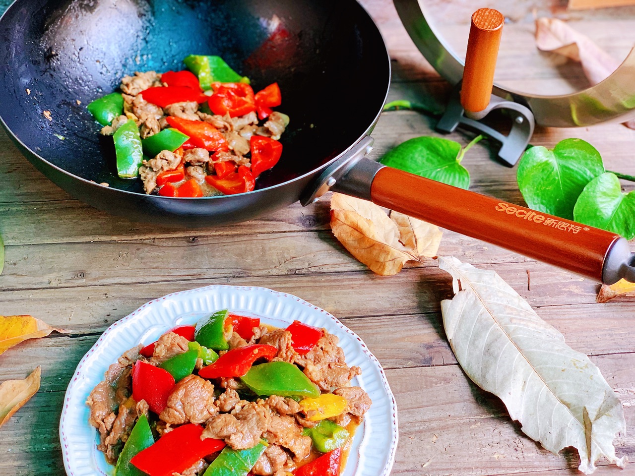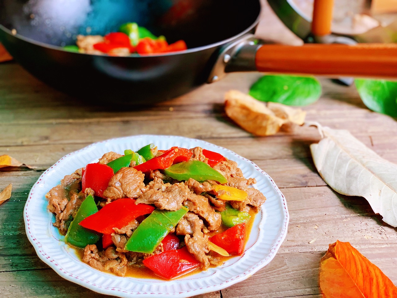 步骤8、一碟鲜嫩美味又无敌下饭的彩椒炒牛肉就做好咯。