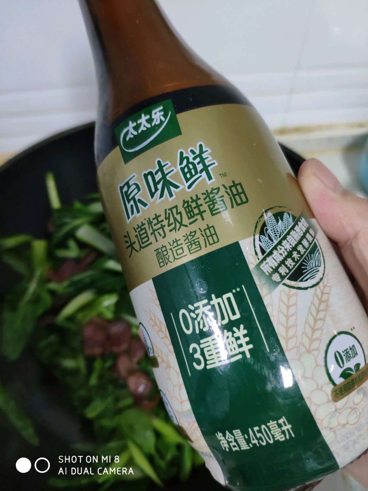 步骤14、千万别炒的火候过大,那样菜心就不回脆脆的了,会流失部分营养