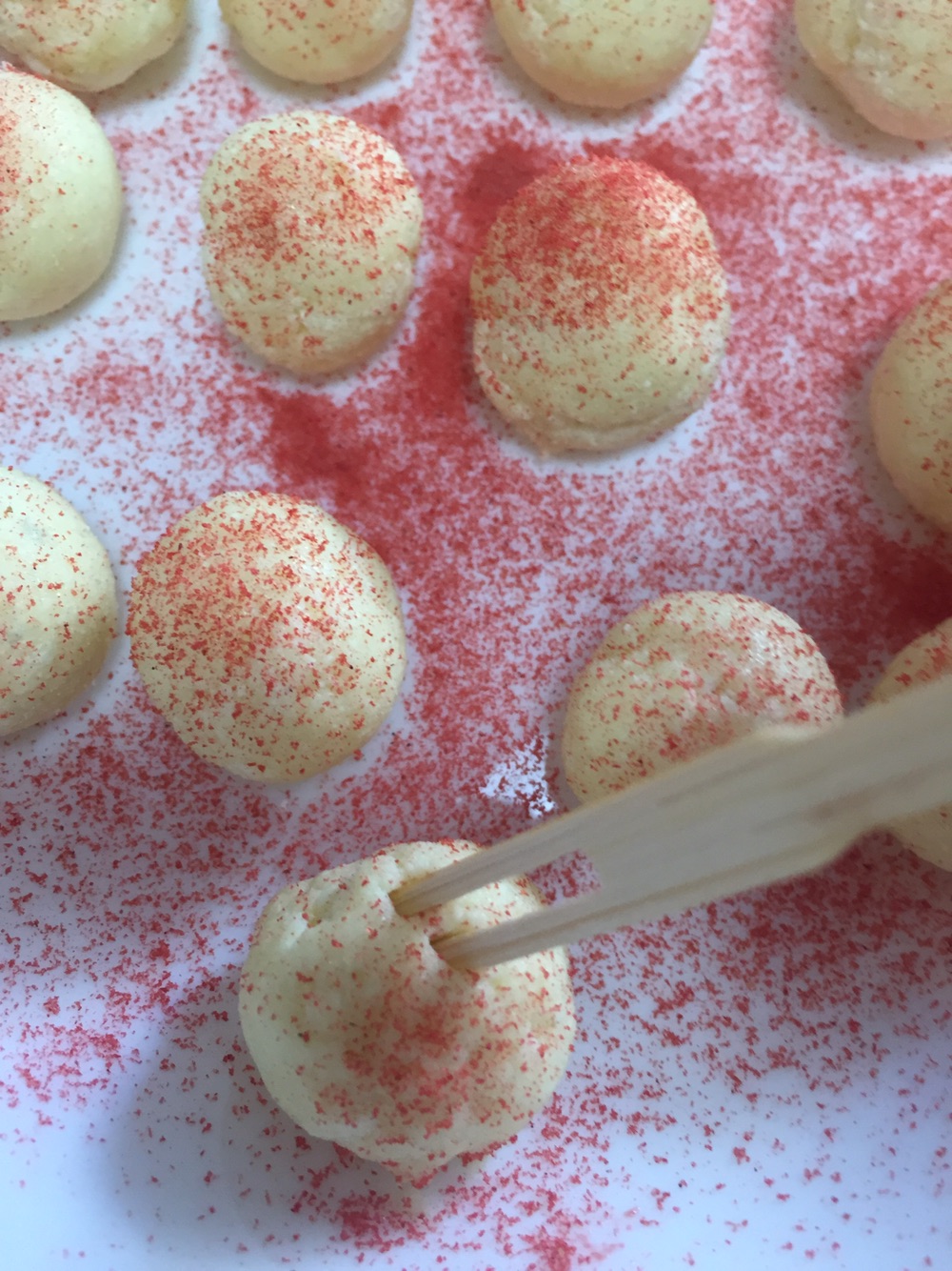 步骤4、筛上草莓粉