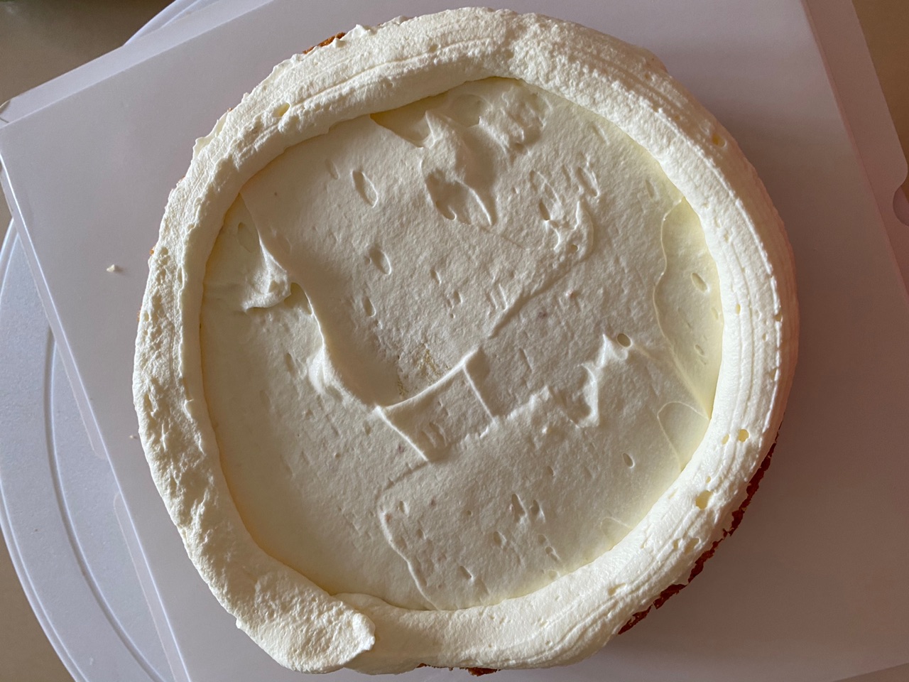步骤38、将剩余的奶油装入裱花袋挤在蛋糕表面放上水果装饰
