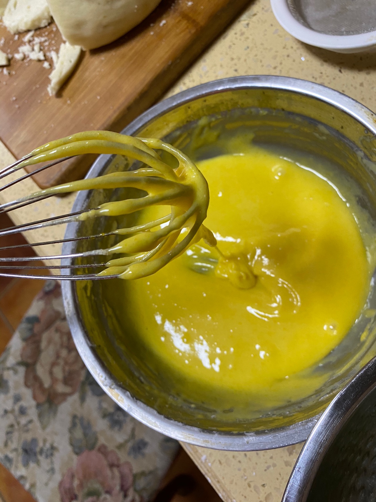 步骤1、玉米油、牛奶,糖混合均匀(乳化好)⚠️无水无油的干净盆中