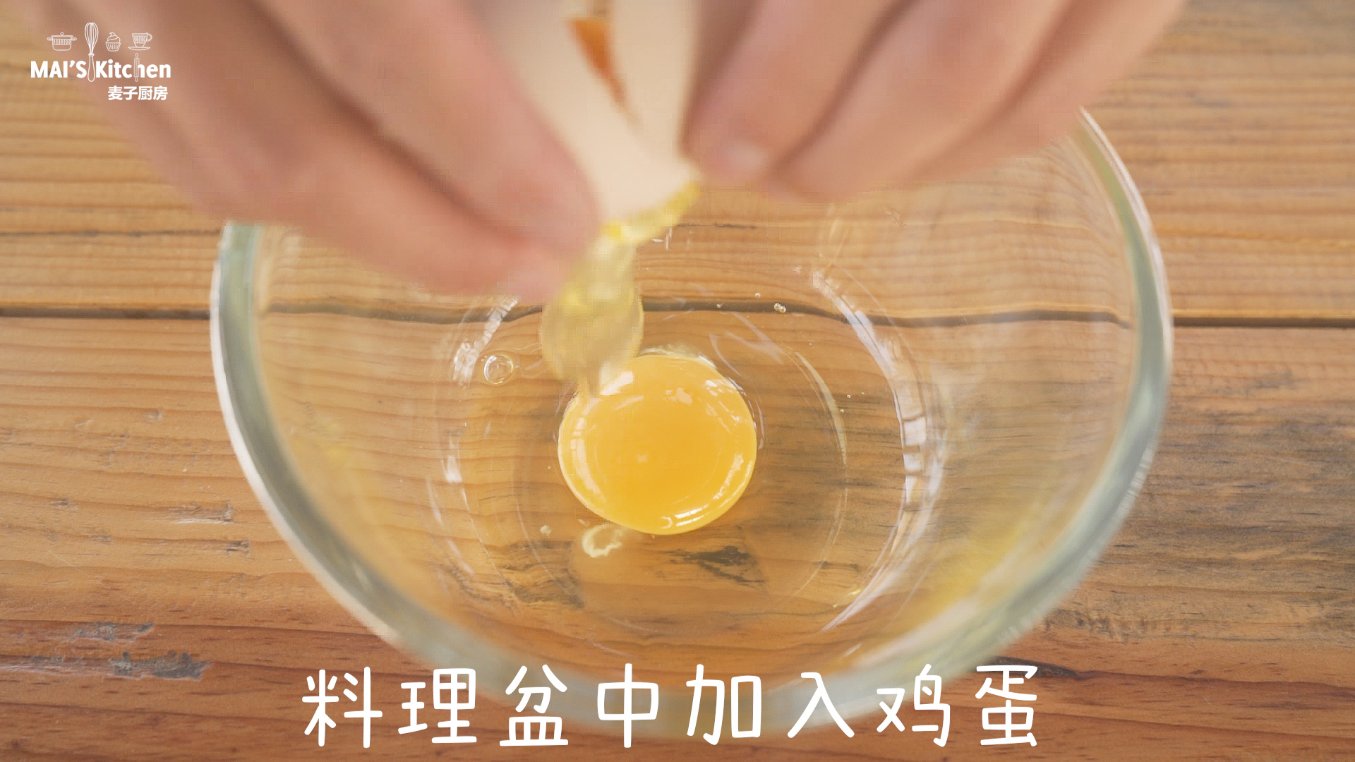 步骤1、料理盆中打入鸡蛋,加入白砂糖,打发至粘稠状态。