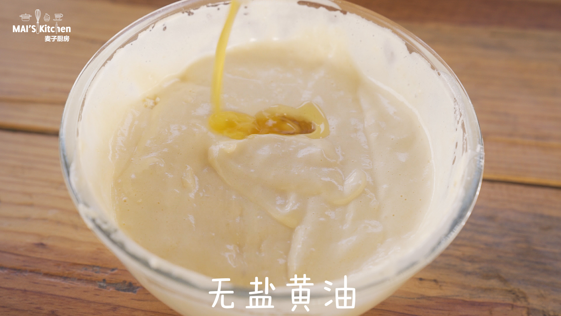 步骤3、搅拌均匀后加入融化的无盐黄油,搅拌均匀。