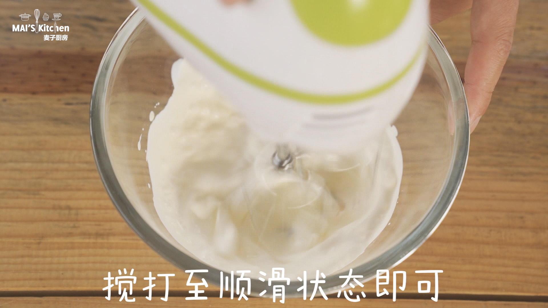 步骤6、料理盆中倒入淡奶油,加入白砂糖,打蛋器打发至顺滑状态即可。