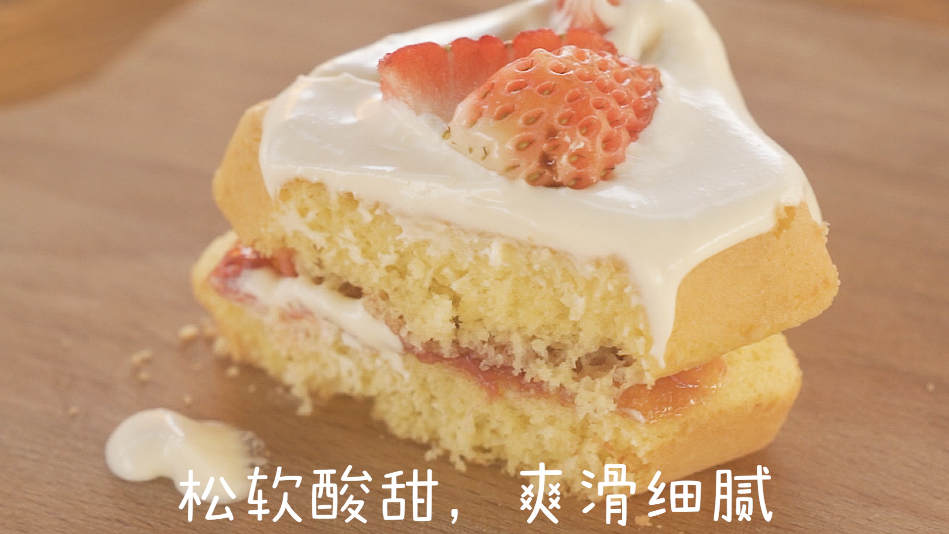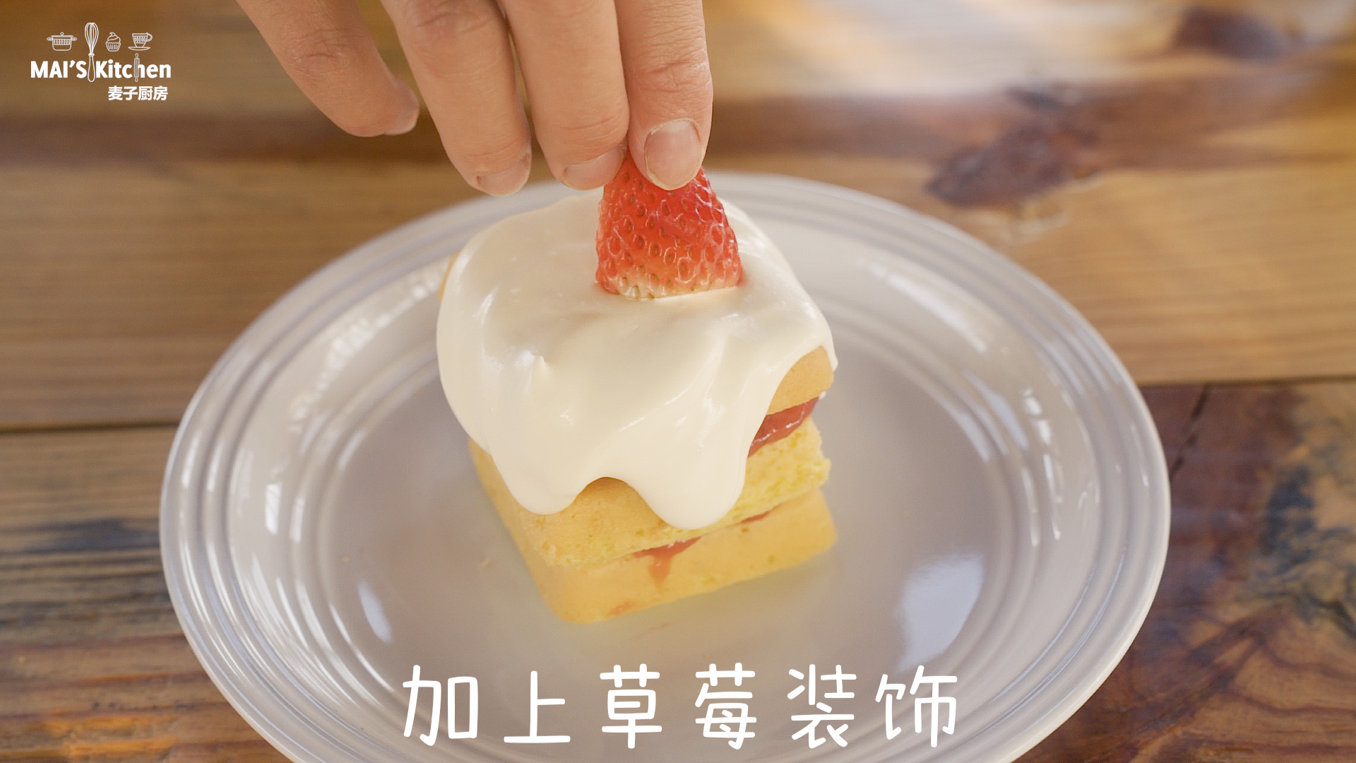 打发材料做的小蛋糕口感柔软,淋上顺滑状态奶油,再加上草莓装饰,治愈级满分!周末给自己来份精致的下午茶。