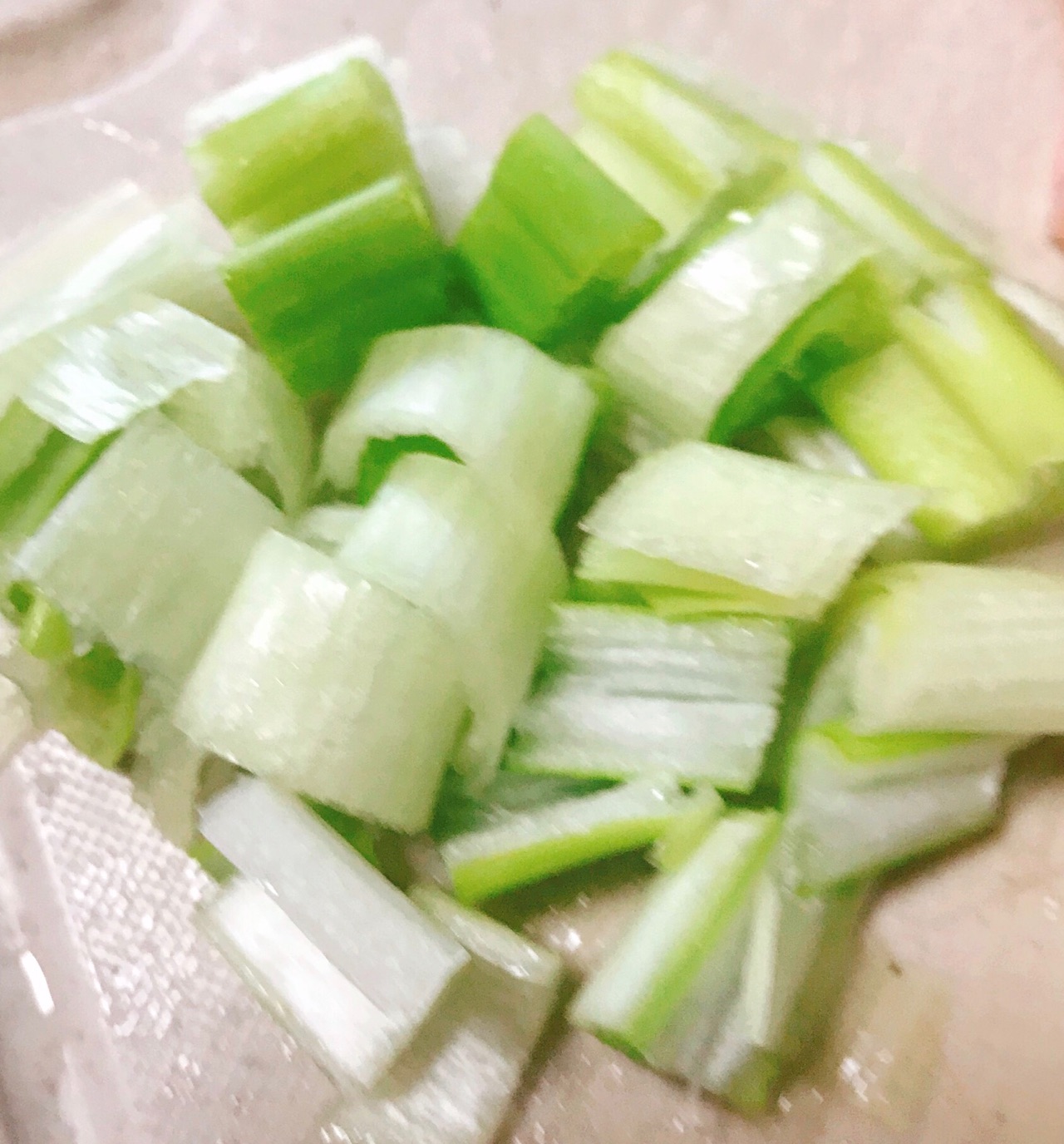 步骤5、将葱段放入锅中翻炒2分钟,撒盐