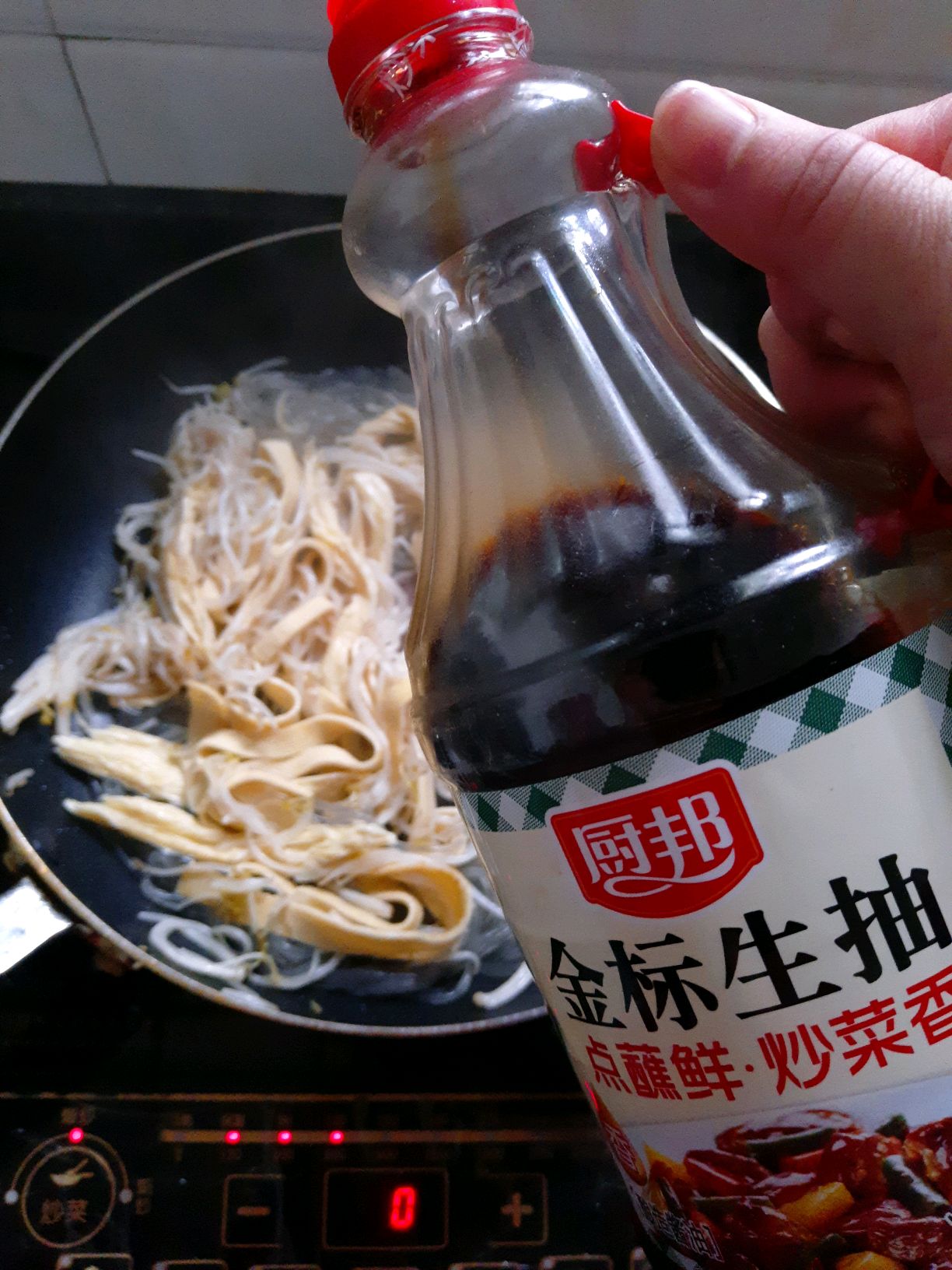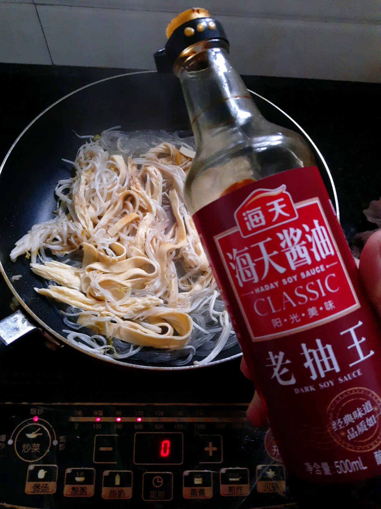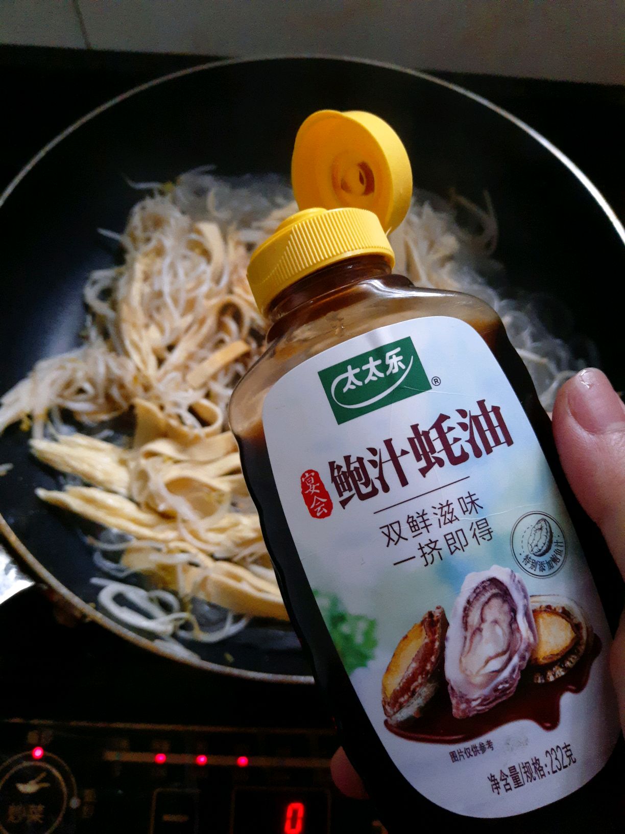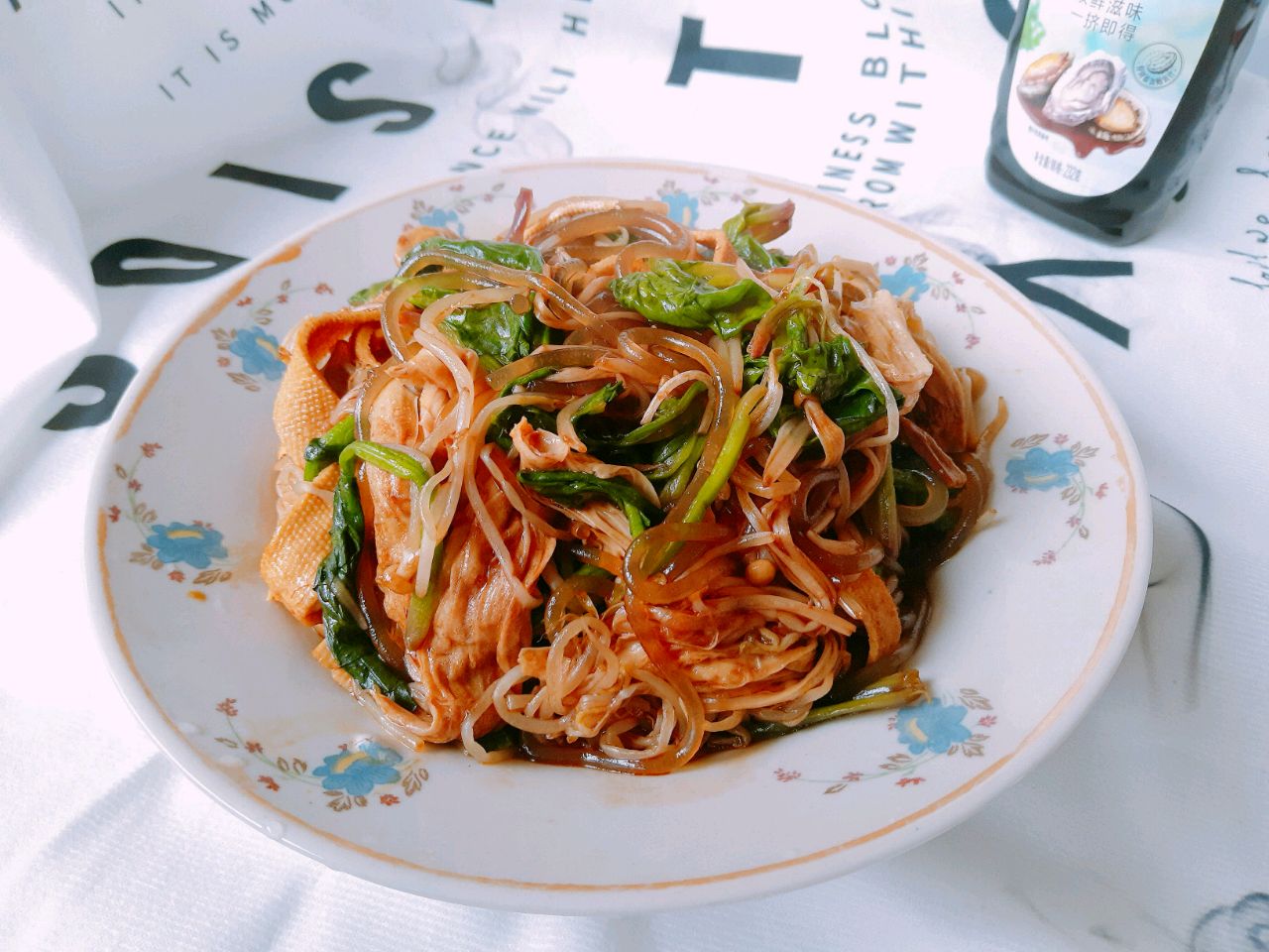 辅料:千张50克、豆芽50克、金针菇100克、菠菜1把、盐1克、老抽2ml、生抽3ml、太太乐鲍汁蚝油2ml