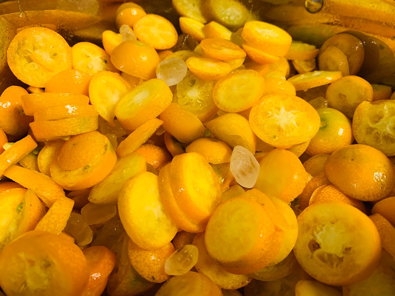 熬煮金桔时不要添水,冰糖和金桔泡一晚最好,或者早上切好冰糖加金桔晚上做也很不错哦。喜欢甜的可以多放一些冰糖。