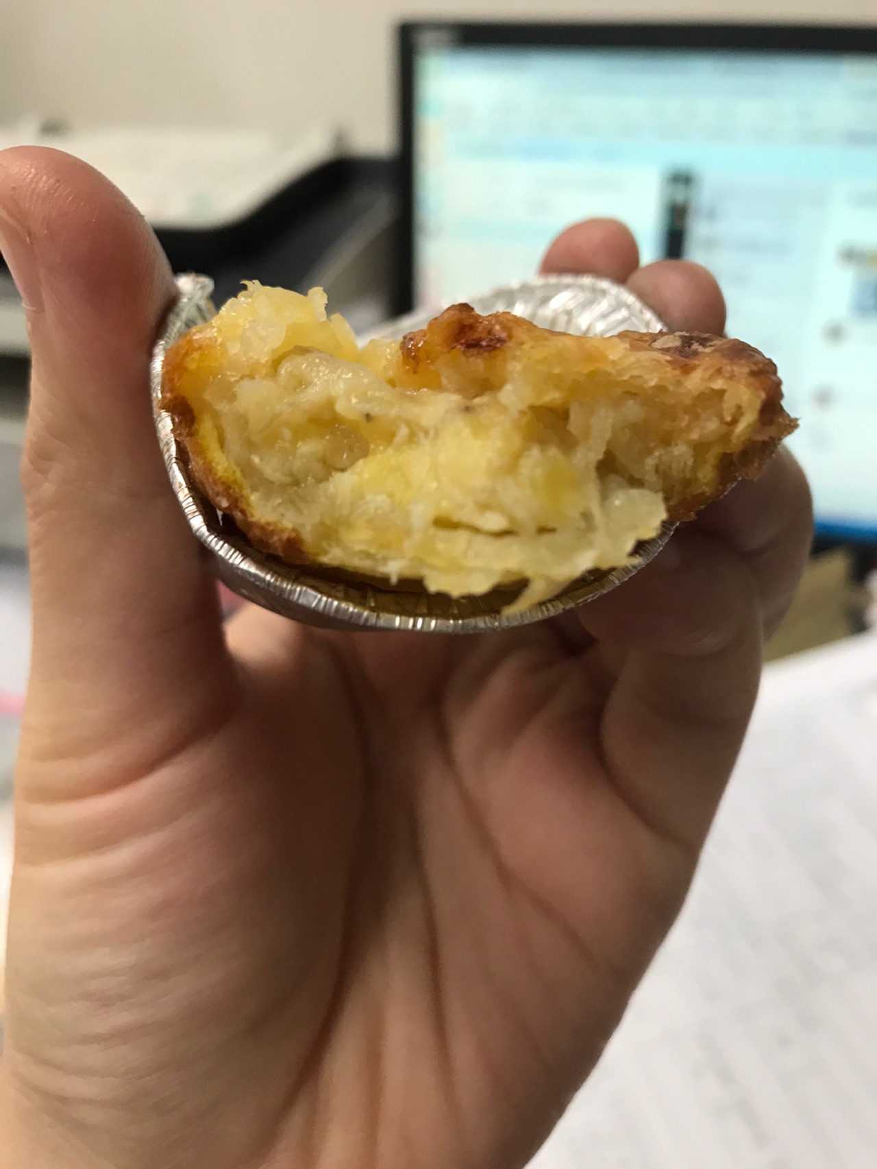家里的香蕉放了几天都没人吃,冰箱里还有之前用剩的蛋挞皮,上午烤了6个没来得及拍照就吃完了,下午又烤了6个,一下子吃完了。准备时间10分钟左右。集美们~做起来~