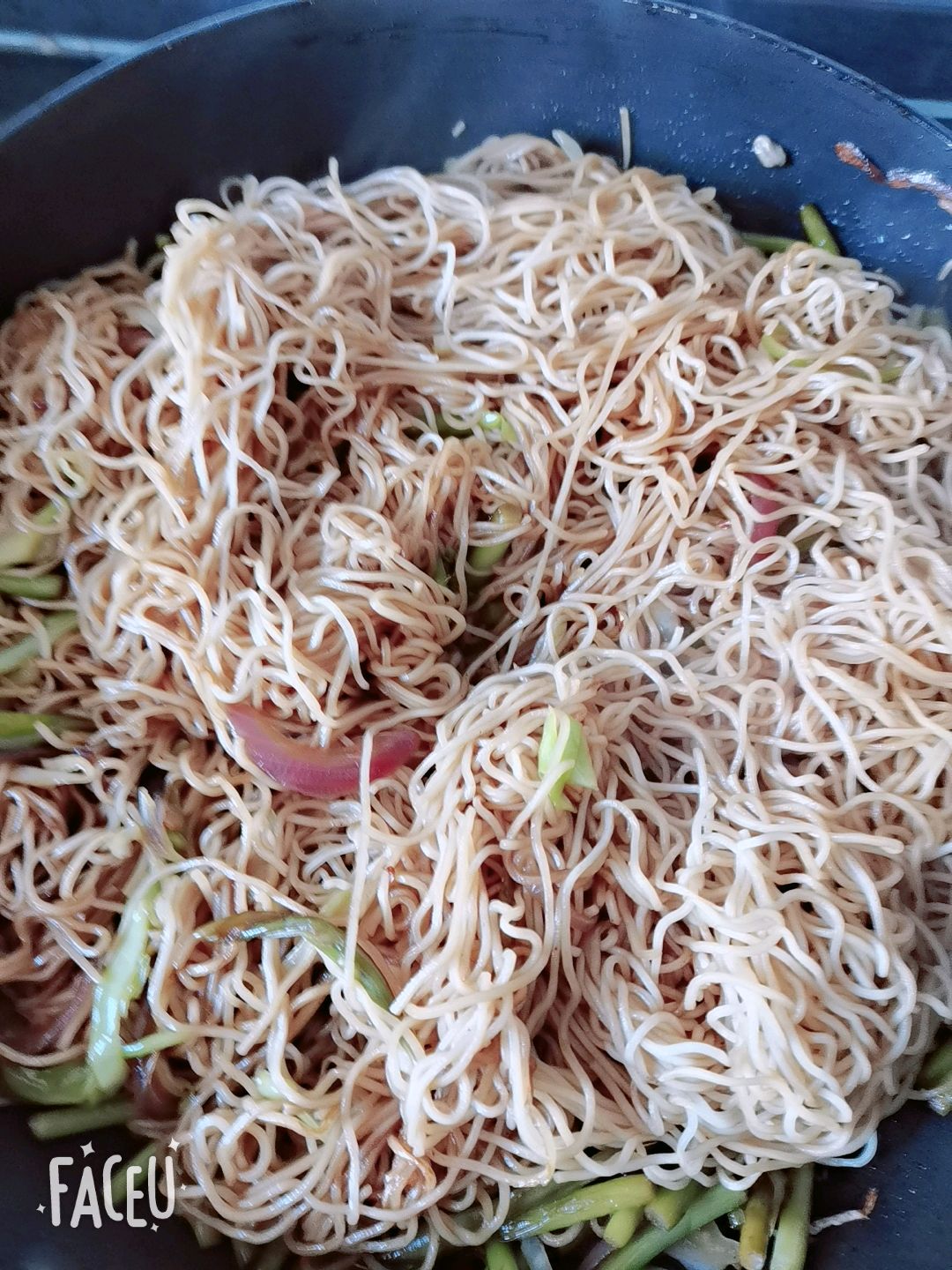 步骤8、装盘,看上去是不是很美味,每次做炒面都能吃一大盘,因为太好吃啦!