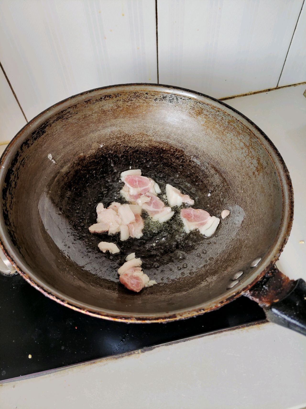 步骤2、放入五花肉