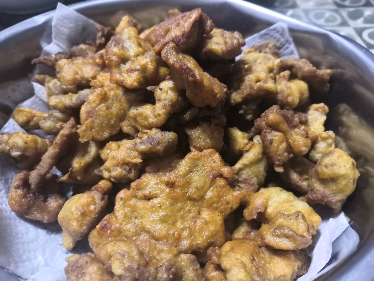 步骤3、油温六成热,下锅炸五分钟,出锅。