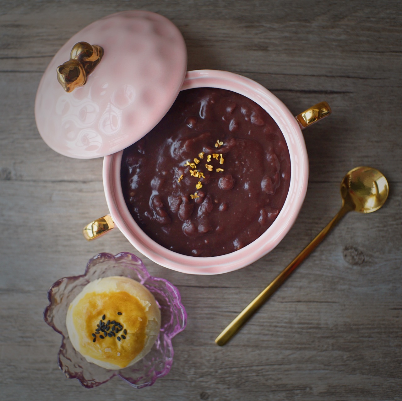 步骤7、盛出一半的红豆,放入料理机打成细沙。