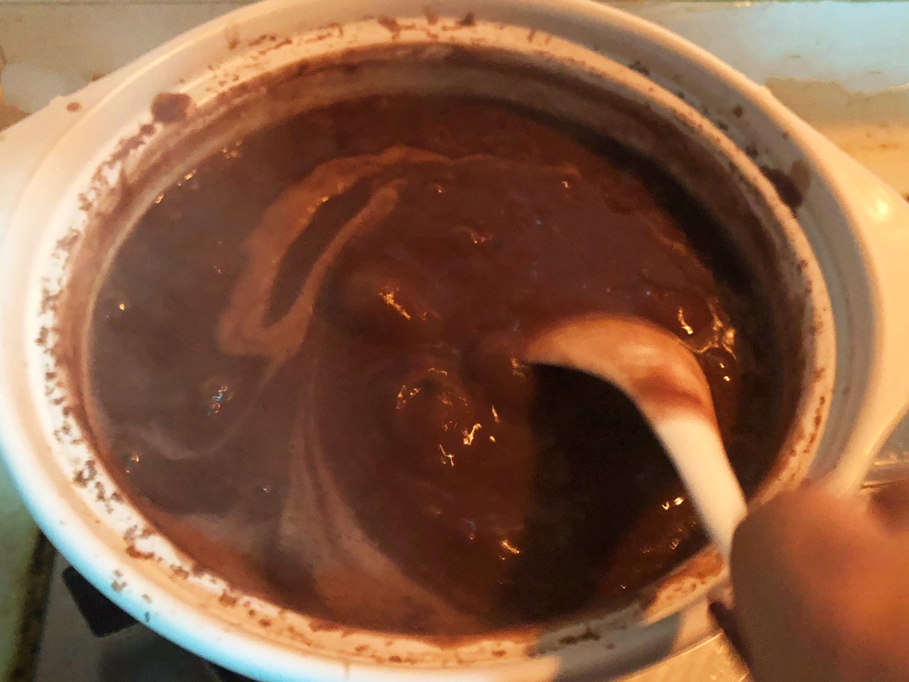 步骤9、边煮边不停搅拌,防止糊锅,煮至略微浓稠即可。