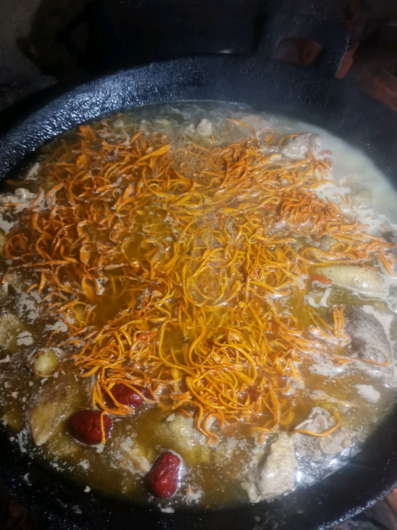 步骤14、出锅前加入虫草花