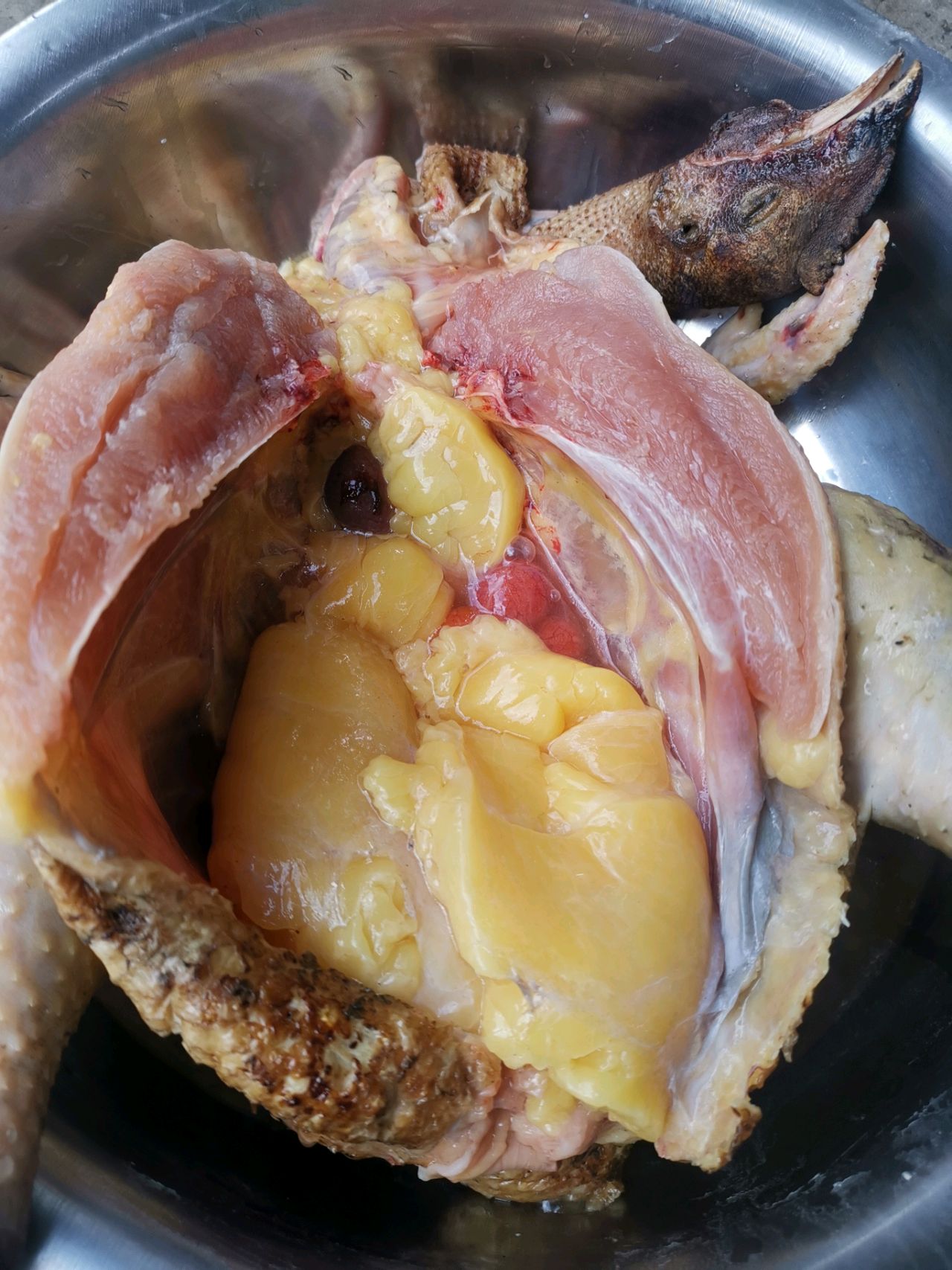 步骤2、洗干净的鸡刨好